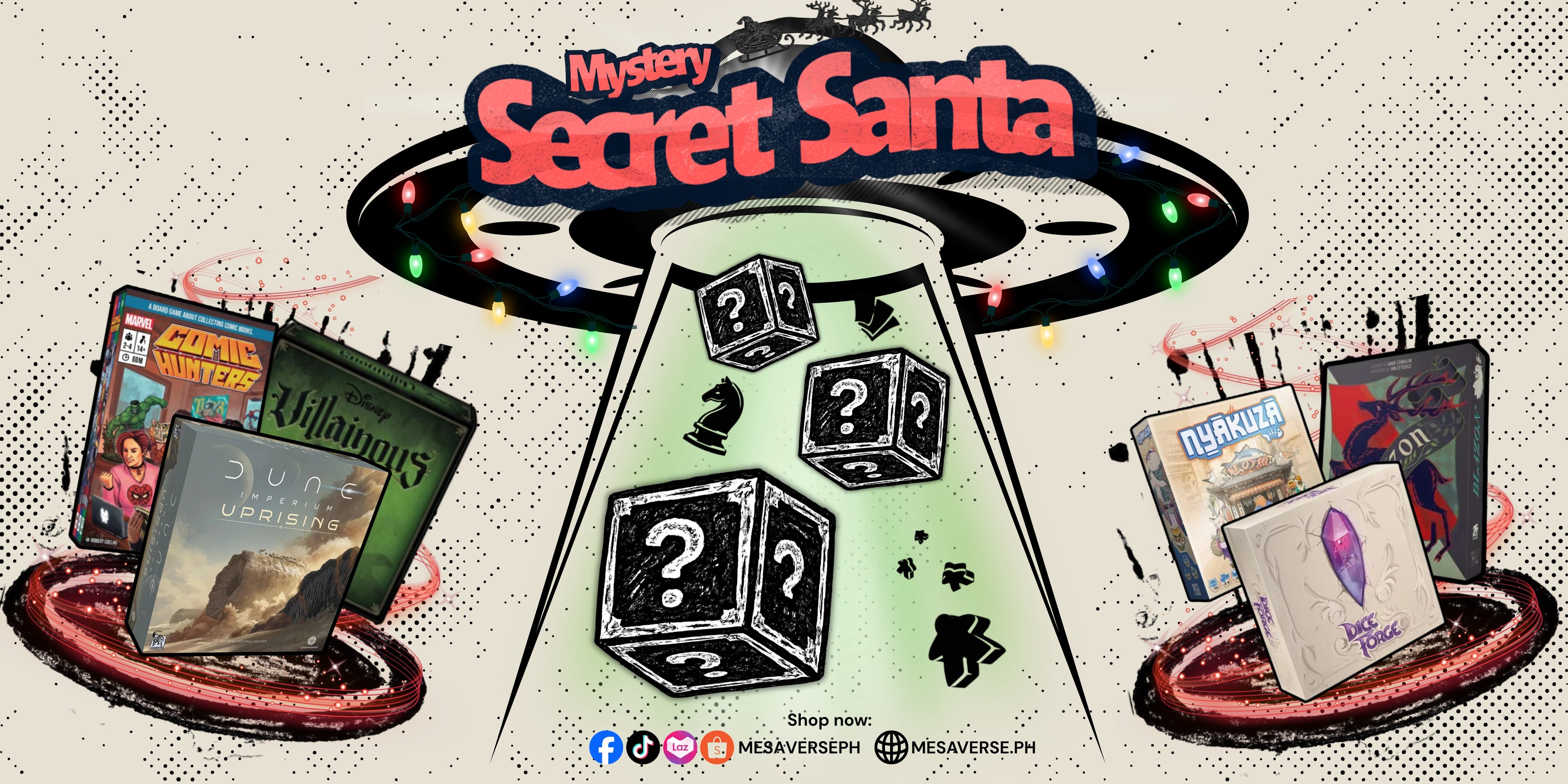 1. This Christmas season, from December 1 to 21, the Mesaverse is bringing you a festive Mystery Secret Santa! Get ready for surprises, thrills, and gifts worth MORE than what you paid for. Choose your Mystery Box: