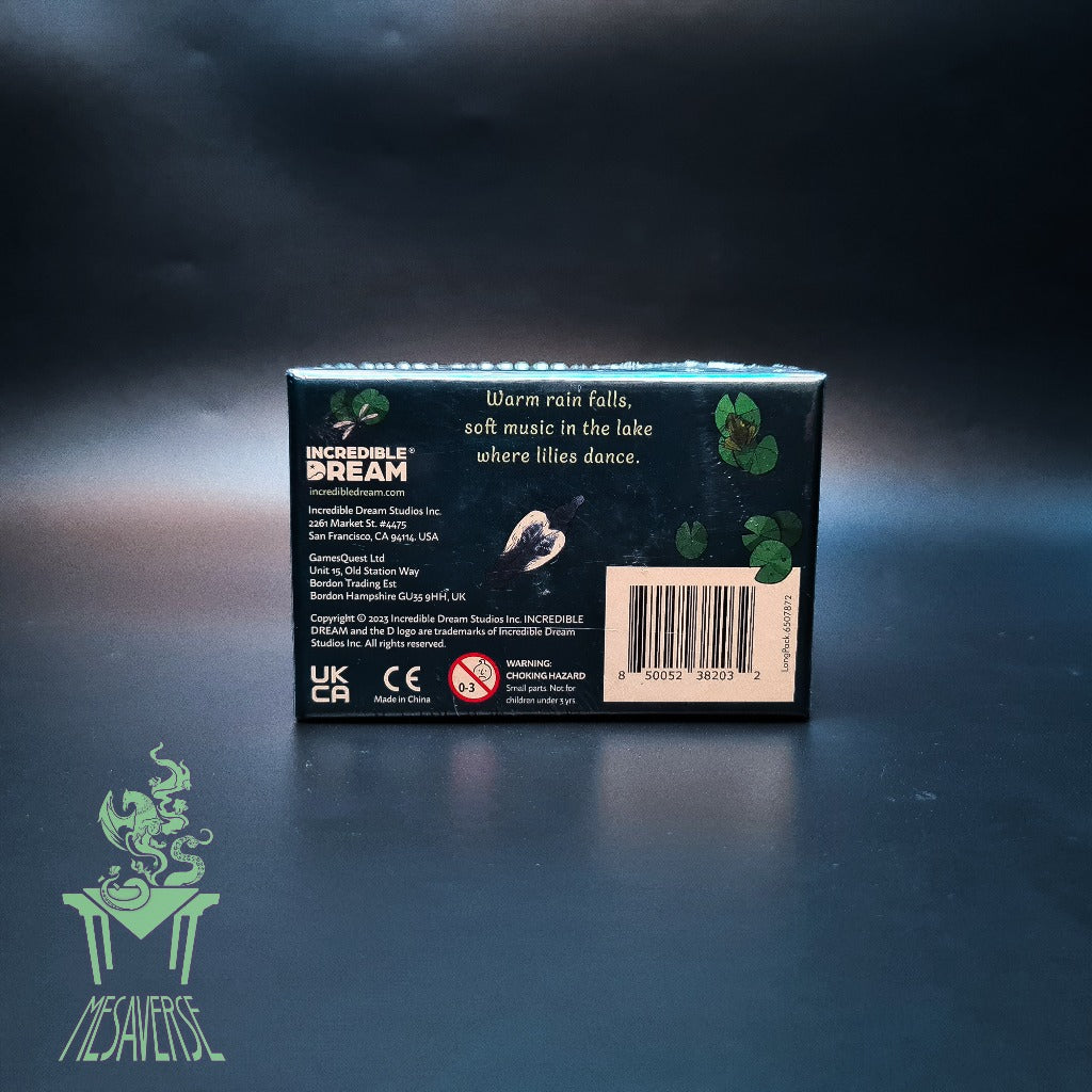 You have come to the lake hoping to see a rare and beautiful sight. The lilies of the lake only open their blossoms in the rain, and only rarely do all eight kinds of lily bloom at once. The goal of A Gentle Rain is to place the lake tiles in such a way to cause all eight types of lilies to bloom before you run out of tiles and the rain ends.