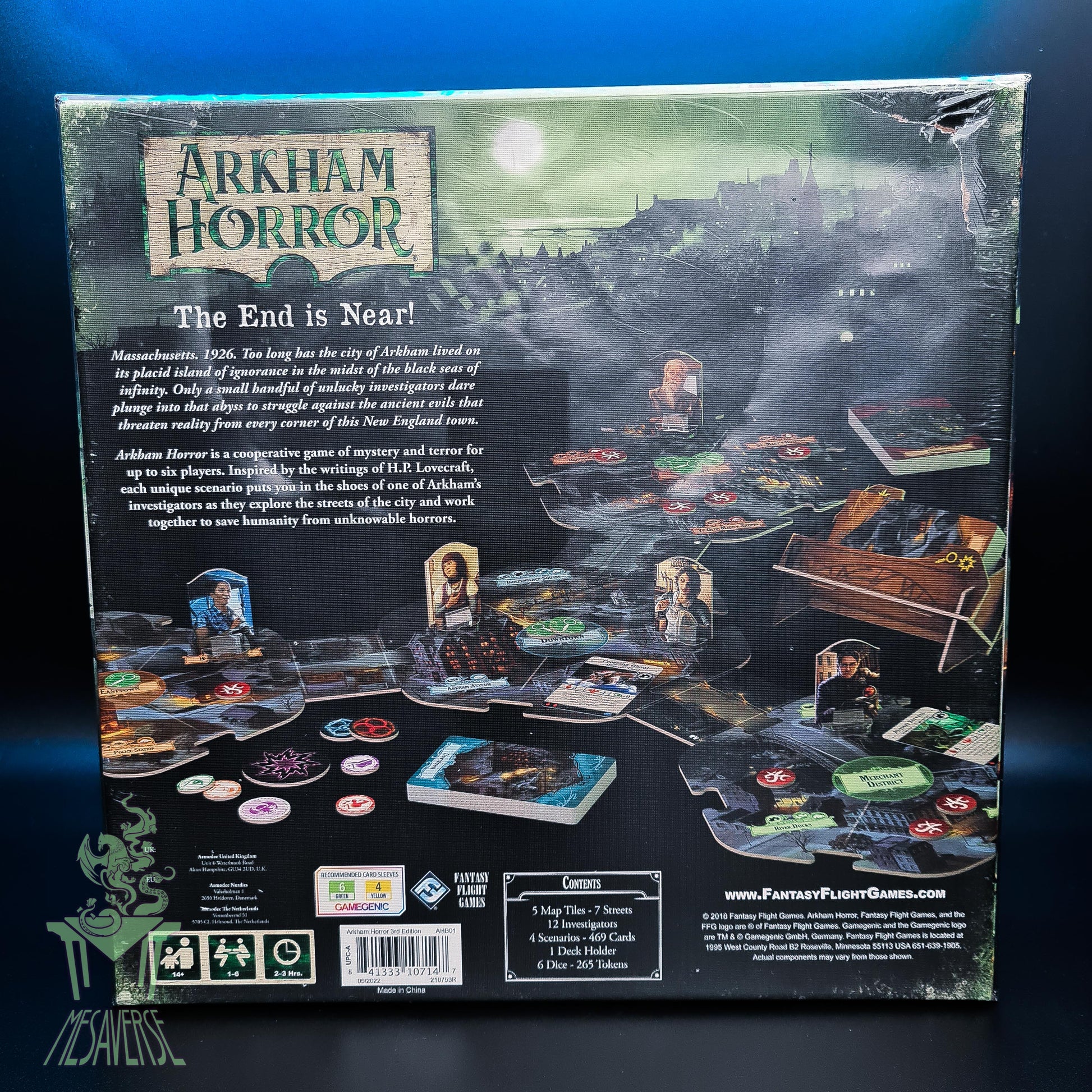 THRILLING GAME OF COSMIC HORROR: A dark shadow grows in the city of Arkham. Alien entities known as Ancient Ones lurk in the emptiness beyond space and time, writhing at the thresholds between worlds. Only a handful of investigators stand against the horrors. Will they prevail?
