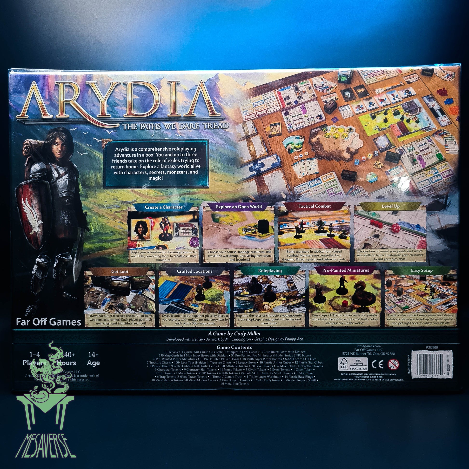 Arydia: The Paths We Dare Tread is an open world, campaign-based, co-operative, fantasy-based, "green legacy" role-playing board game. The game of Arydia is built on four design pillars: Exploration, Progression, Combat, and Role-playing.