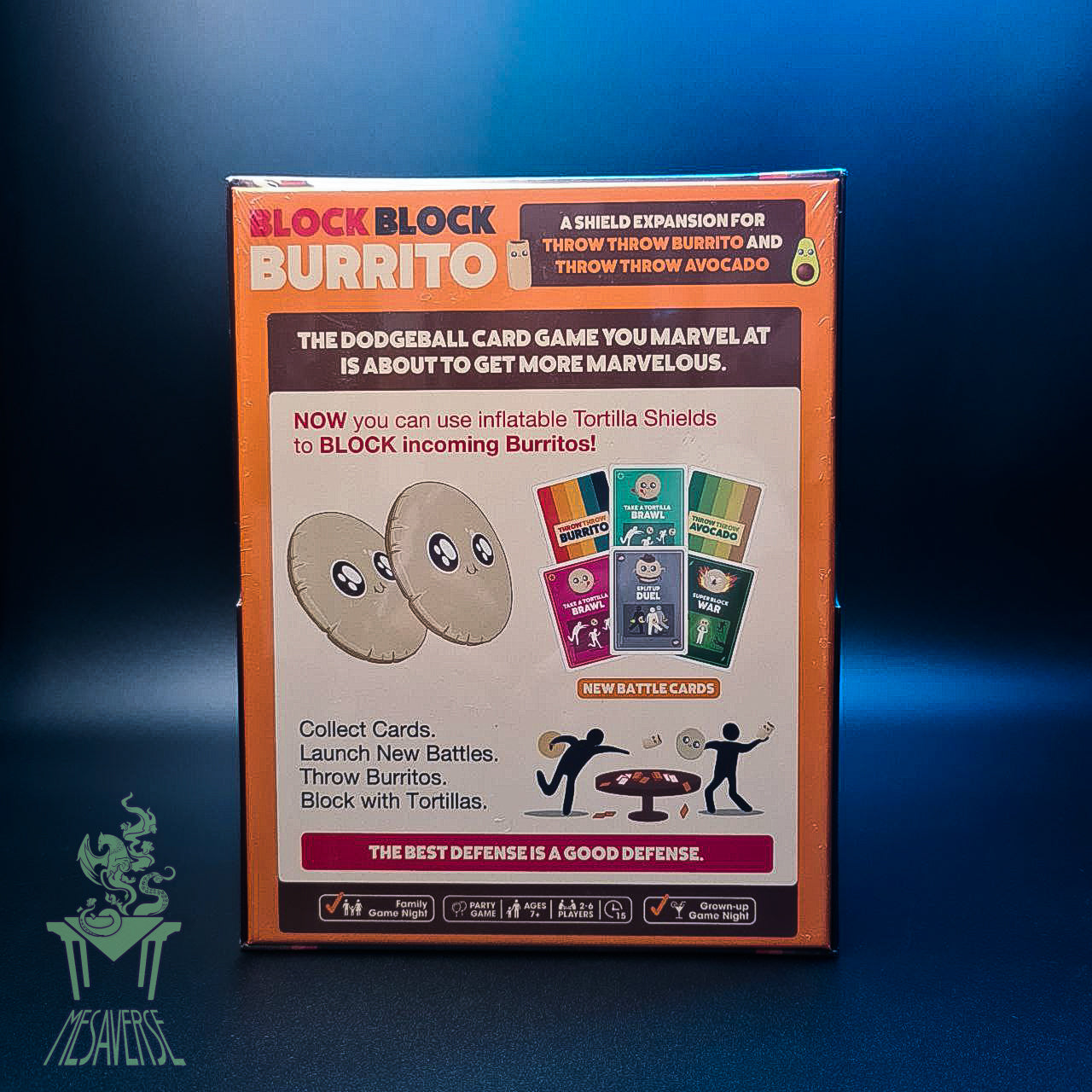 Your favorite food-based dodgeball card games now have an expansion pack! Take your battle to the next level with all new battle cards and inflatable tortilla shields. Block and load!