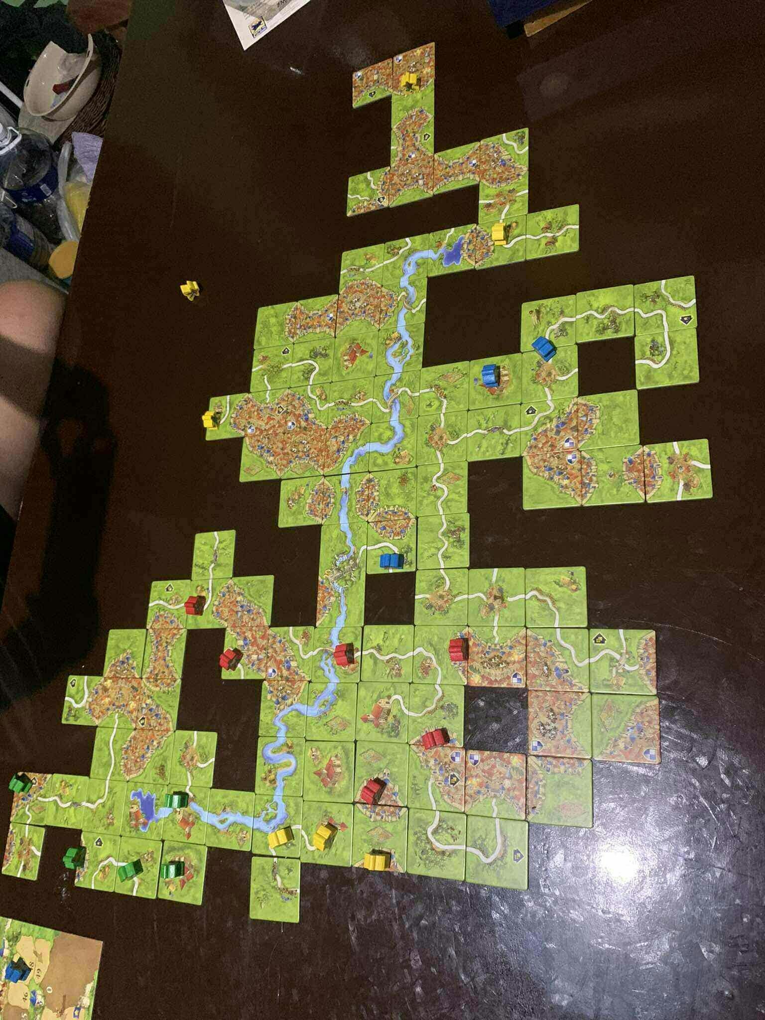 ONE STEP AT A TIME TILE-PLACEMENT GAME: Players fill in the countryside around the medieval fortified city, choosing from tiles that depict cities, roads, monasteries, and fields; each new tile creates an ever-expanding board on which players can then add their followers.