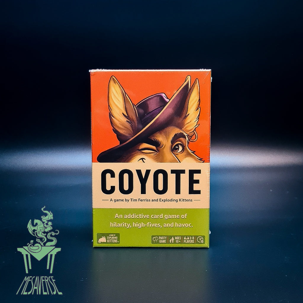 Coyote is a simple bluffing game in a western setting. Every player gets a card (bound on his forehead by a fabric tape) showing a number of "hidden" Indians or a special value. You don't know the value of your card, but you can see all the others. The object of the game is to guess how many Indians are shown on the cards, declaring an increasing number every turn. If you are caught over declaring, you lose.