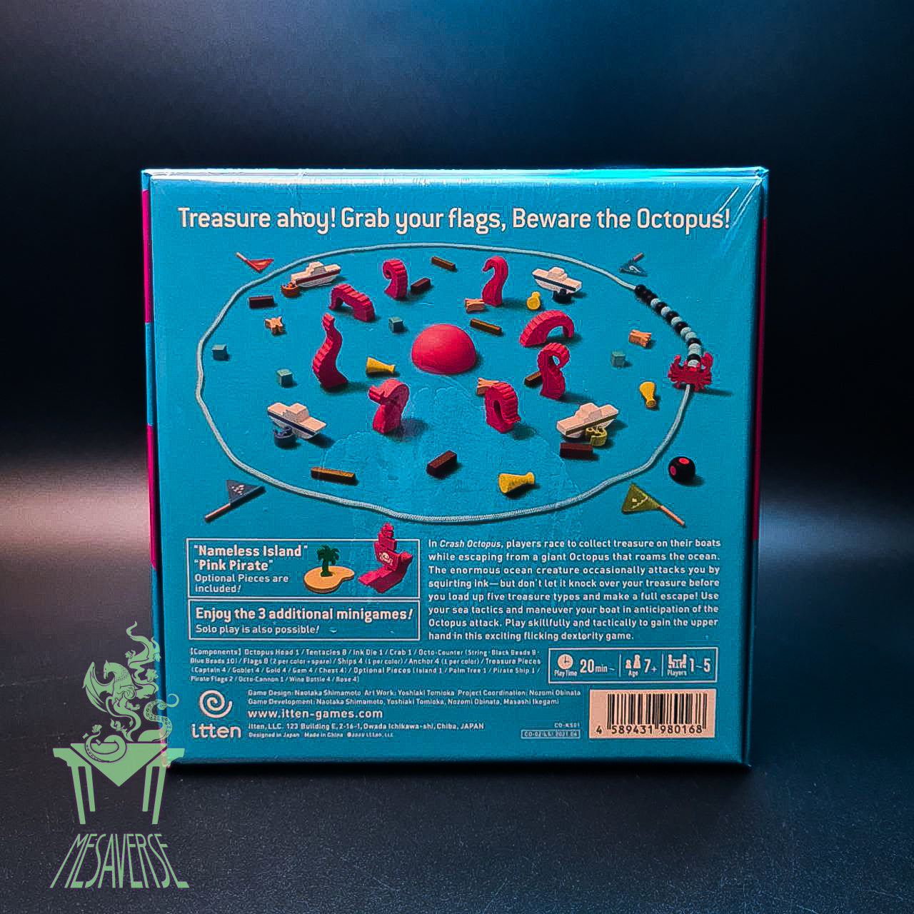 In Crash Octopus, players race to collect cargo that's floating in the ocean, while surrounded by a horrifically giant octopus. The first player who collects all five types of cargo on their ship wins.