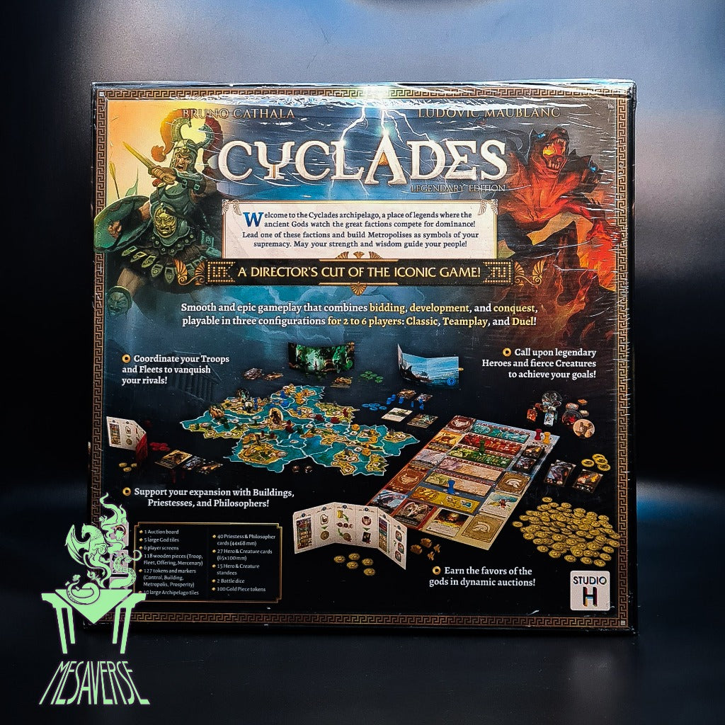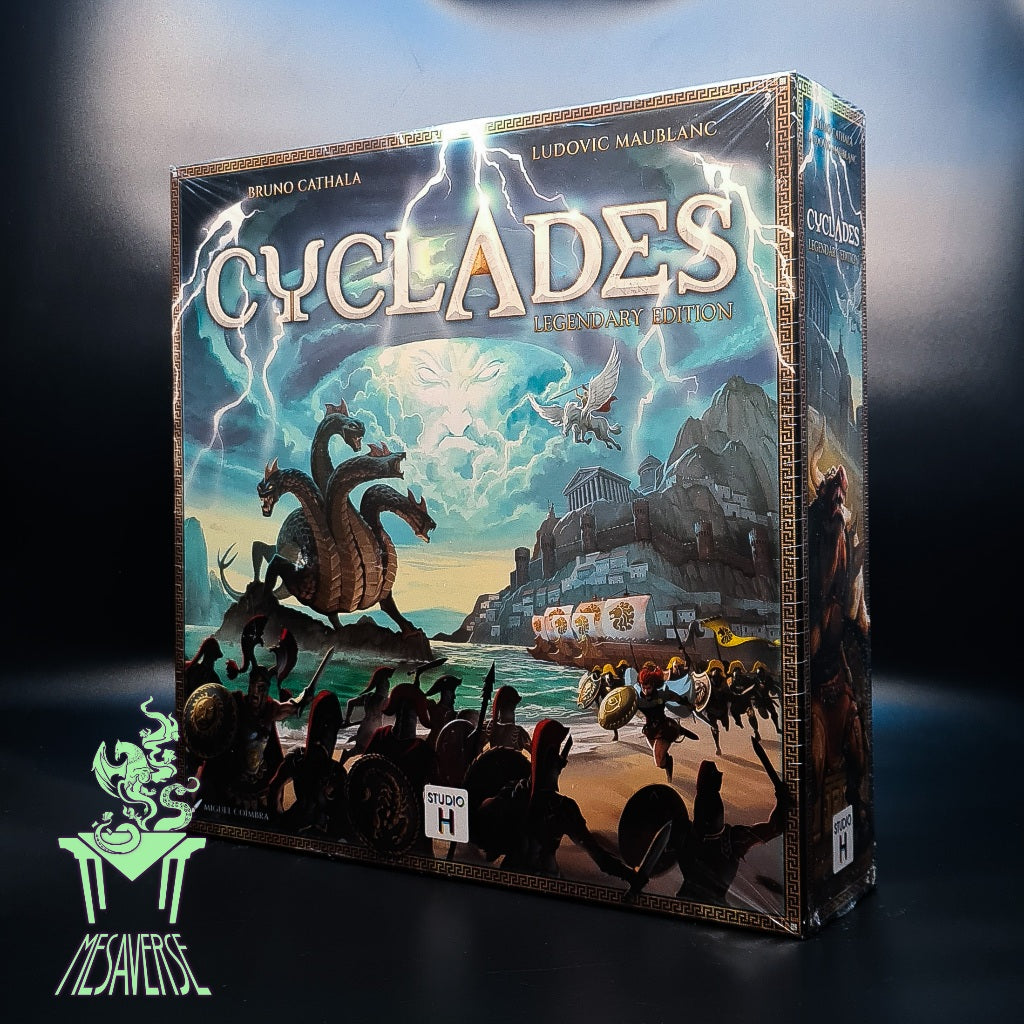 "In this latest collaboration between Bruno Cathala and Ludovic Maublanc, players must buy the favor of the gods in their race to be the first player to build two cities in the Ancient Greek island group known as the Cyclades.