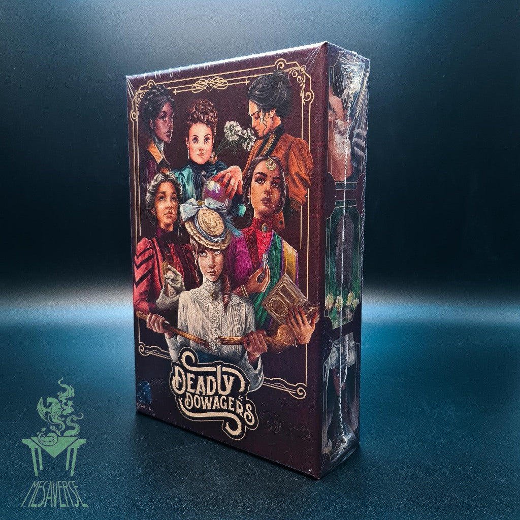 Deadly Dowagers is a game of marriage, murder, and money. You compete with the other lovely ladies in your town by strategically growing your dowry, while being careful not to gain too much infamy, or the duke may pass you over for another bride!