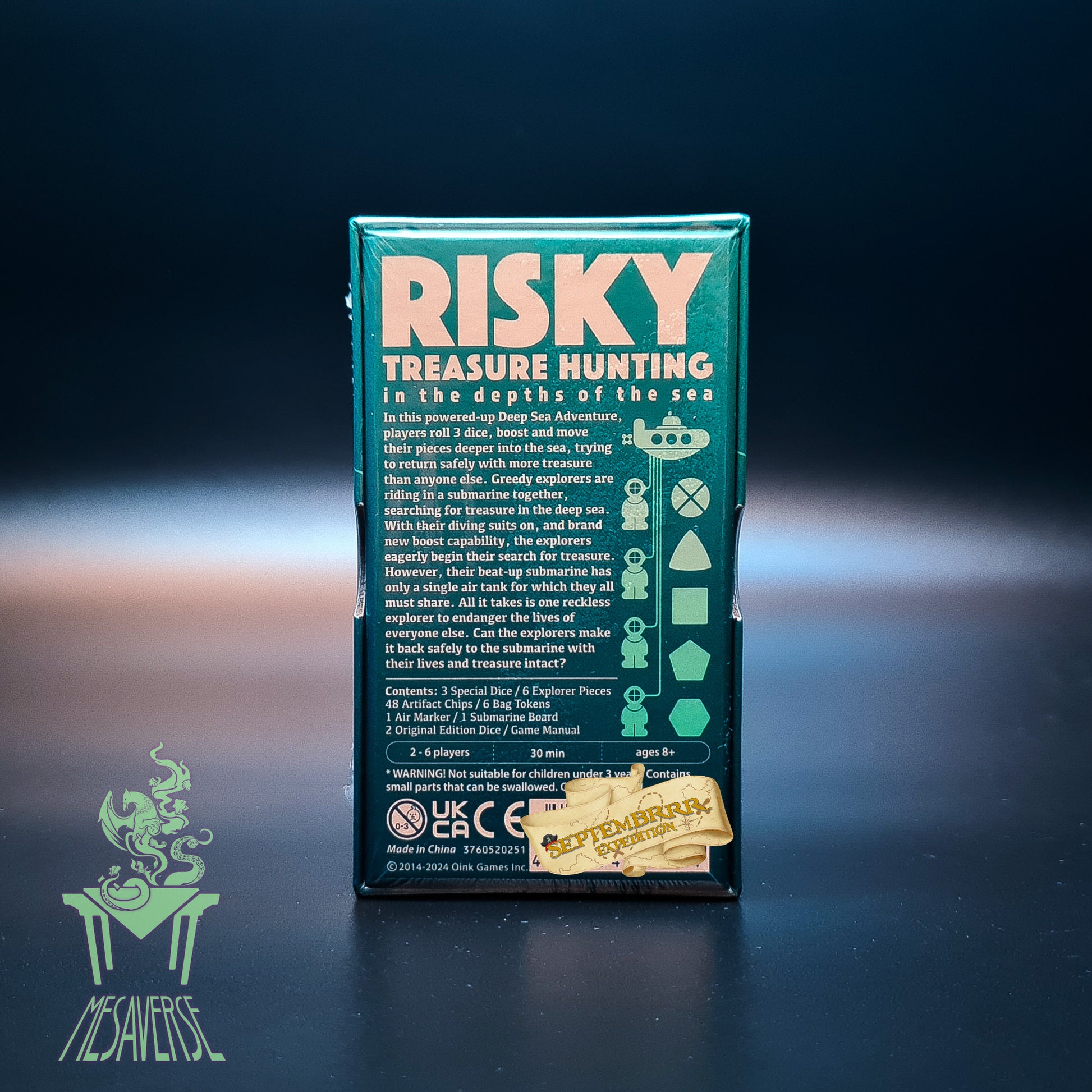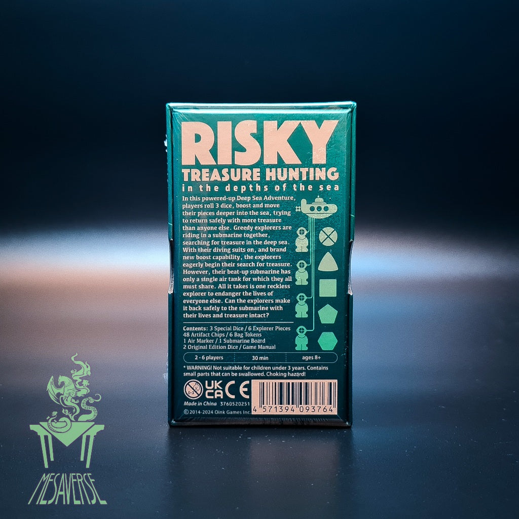 In each of three rounds, players take turns rolling dice and moving their diver along a trail of face-down treasure tokens. The deeper you go, the more valuable the tokens are!