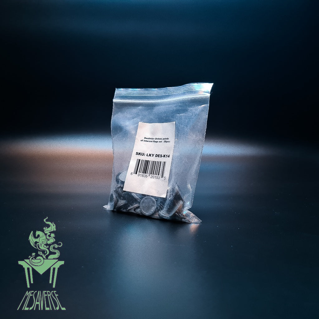 Points of Interest play a key role in all Destinies scenarios as they are the places, characters, events, and mysteries that populate the very world you are exploring. These 26 plastic Point of Interest flags replace the punchboard tokens from the Destinies base game and add a true sense of scale to the world.