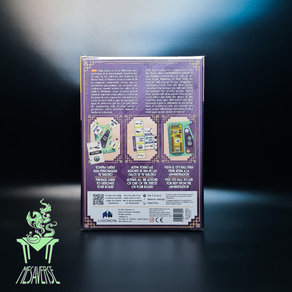 In Flatiron, you will be transported to the Big Apple to participate in the construction of this iconic building. Both you and your opponent will need to develop your companies by adding new cards to your personal board, thereby allowing you to perform more and better actions on each of the surrounding streets. The ultimate goal is to earn more points than your opponent, primarily by undertaking construction tasks but also by maintaining an impeccable public image and adhering to the decrees of the New York City Council. When the roof is placed, and everything is ready for the grand opening, the game ends. Victory and recognition will go only to the player who has accumulated the most points.