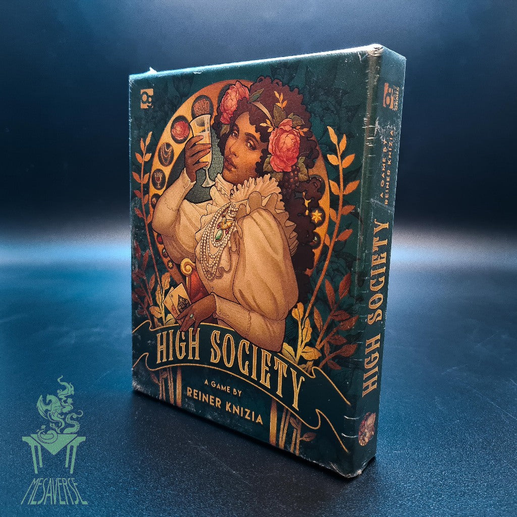In Reiner Knizia's High Society, players bid against each other to acquire the various trappings of wealth (positive-number and multiplier cards) while avoiding its pitfalls (negative number and divisor cards). While bidding, though, keep an eye on your remaining cash - at the end of the game, even though all those positive-number cards might add up to a win, the player with the least money isn't even considered for victory.