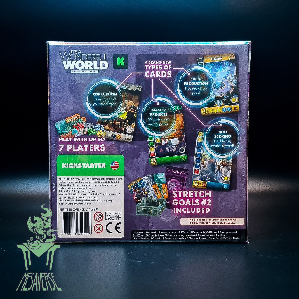 This new deck of cards complement the existing cards of It’s a Wonderful World. From now on, each turn, you will play a mixture of classic Development cards and Ascension cards. Ascension cards introduce new ways to play, most notably through pair scoring and corruption.