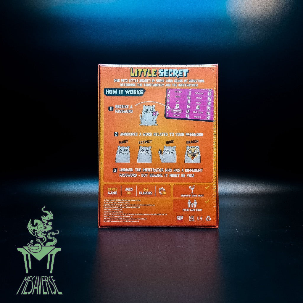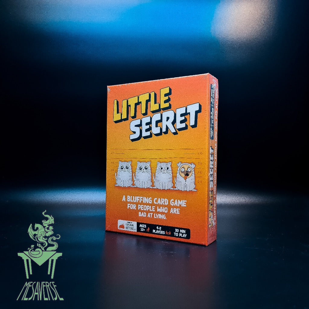 The U.S. edition of Little Secret from Exploding Kittens changes the groups to good kitties, confused kitties, and a spy pup, but otherwise gameplay remains the same, with each player card having enough clues to play 21 games without needing to shuffle or re-deal.