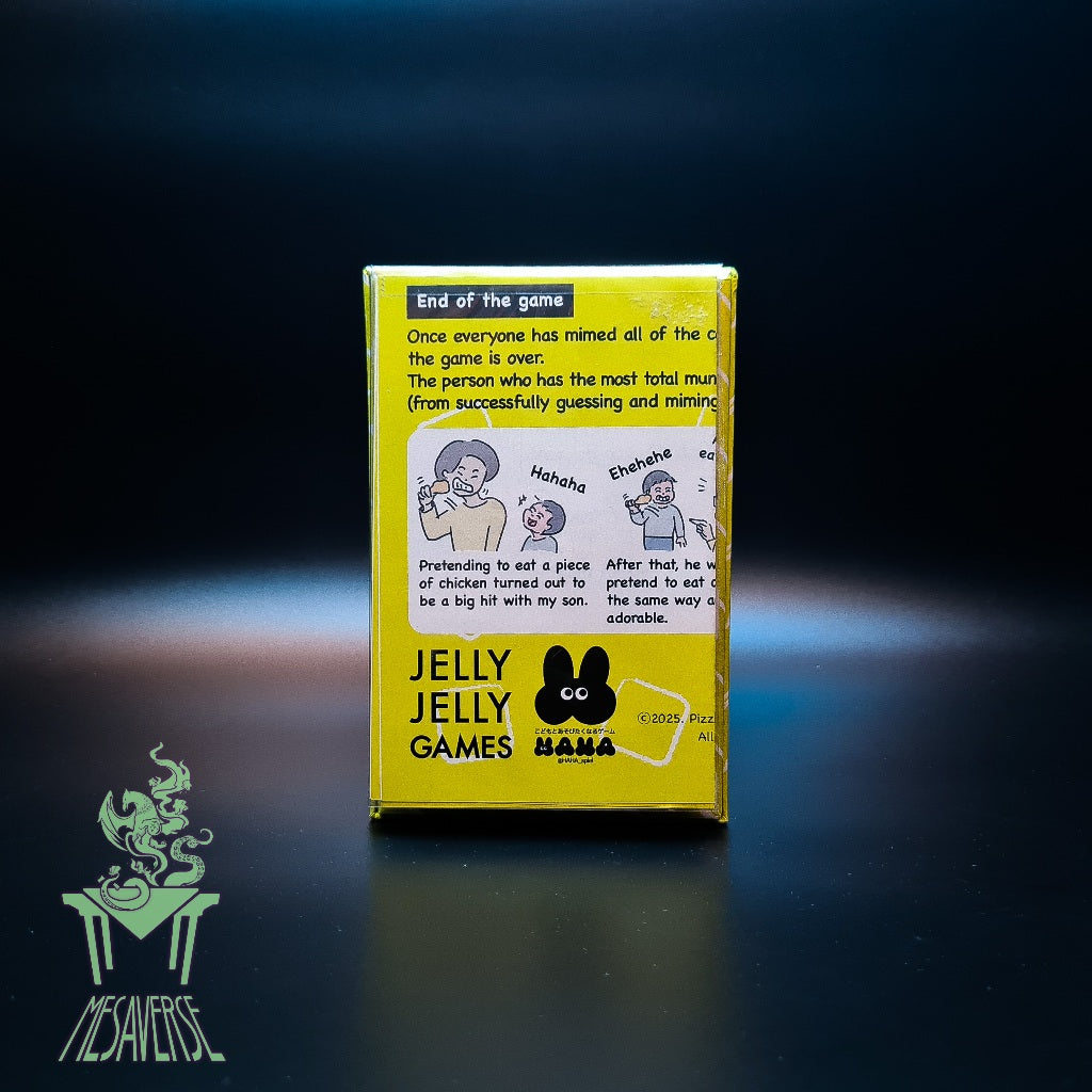 Each player is dealt a hand of cards from one of the decks, and the other deck is spread out face up on the table. On their turn, a player takes the top card from their deck and attempts to act out eating that food; they may optionally use the cutlery. The other players examine the face up cards and try to guess what the food is; each player has one guess.