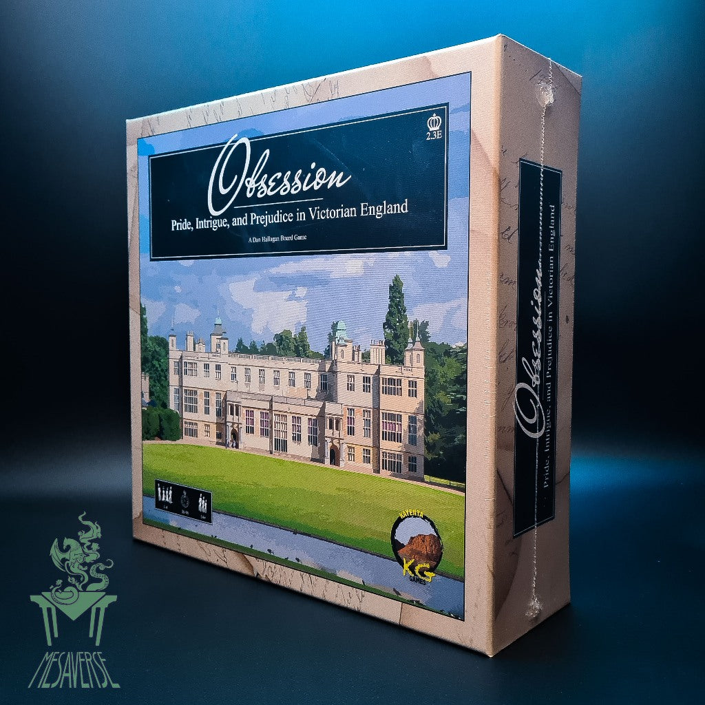 Obsession is a game of 16 to 20 turns in which players build a deck of Victorian gentry (British social upper class), renovate their estate by acquiring building tiles from a centralized builders' market, and manipulate an extensive service staff of butlers, housekeepers, underbutlers, maids, valets, and footmen utilizing a novel worker placement mechanic. Successfully hosting prestigious social activities such as Fox Hunts, Music Recitals, Billiards, Political Debates, and Grand Balls increases a player's wealth, reputation, and connections among the elite.