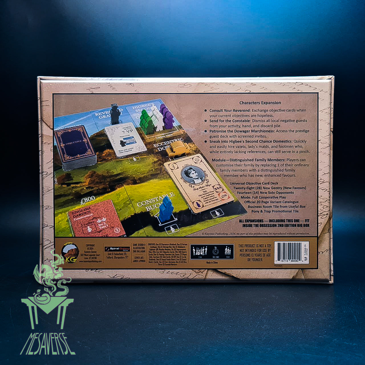 The Characters expansion for Obsession brings thematic new personalities to Derbyshire who provide unique actions for managing your country estate: Constable Bucket, a fair hand at running off all manner of unsavoury guests; a Mr. Higbee who can find domestic help in a pinch (“References? I am sure they are here somewhere…”); the wise Reverend Grantly, a dispenser of sage advice; and an Eccentric Dowager Marchioness, who will connect you with a Prussian major, Swedish noble, and a Russian count as quick as a wink.