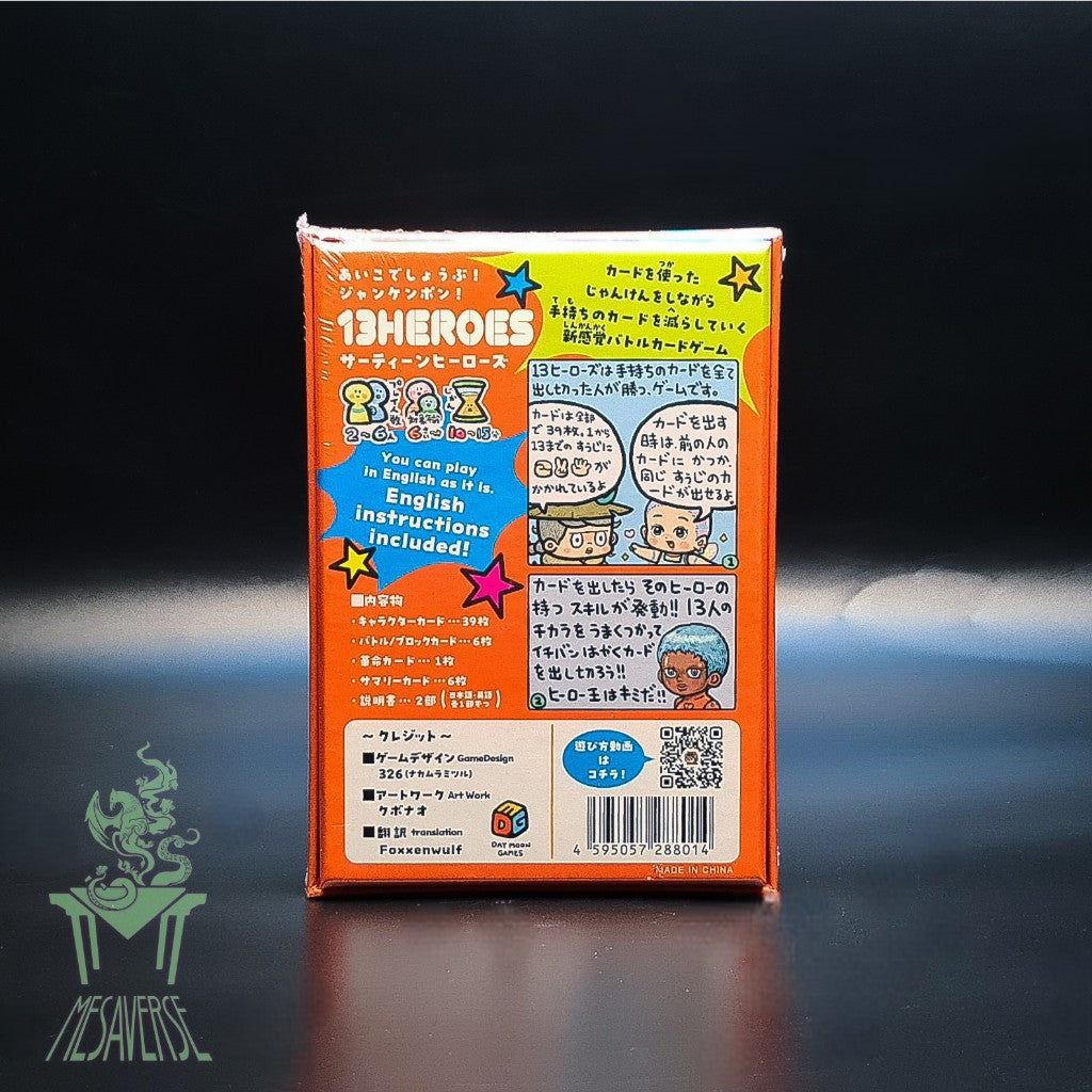 13 Heroes is a fast paced card game with the iconic wacky design and art style of "ito" game designer Mitsuru Nakamura that breathes new life into a classic childhood game everyone is already familiar with, making it the perfect choice for parties and groups with casual gamers.