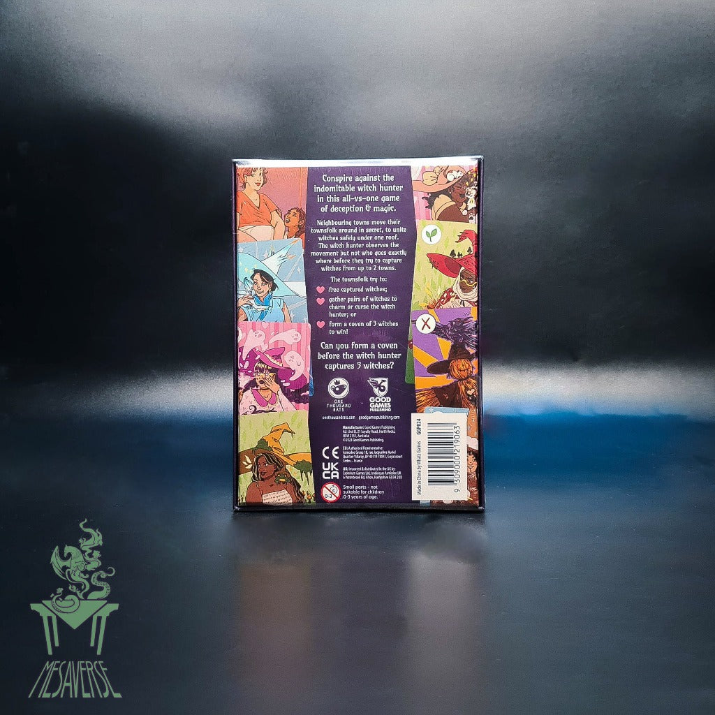 4 to 6 Players Curses & Covens is an all vs one game where one player takes on the role as the witch hunter, while all other players are towns trying to protect the friendly witches! The aim of the witch hunter is to capture 5 witches, while the towns want to form a coven of three witches of the same suit in one player's hand to win.