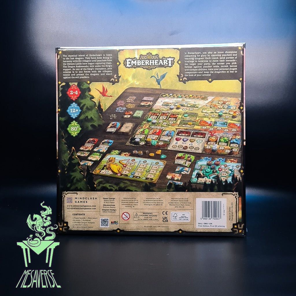 Emberheart is a quick-playing, medium-weight worker placement game . As one of the King’s Champions, your task is to recruit heroes, rescue dragons and expand their preserves, train your own dragon companion, and oppose the roaming poachers.