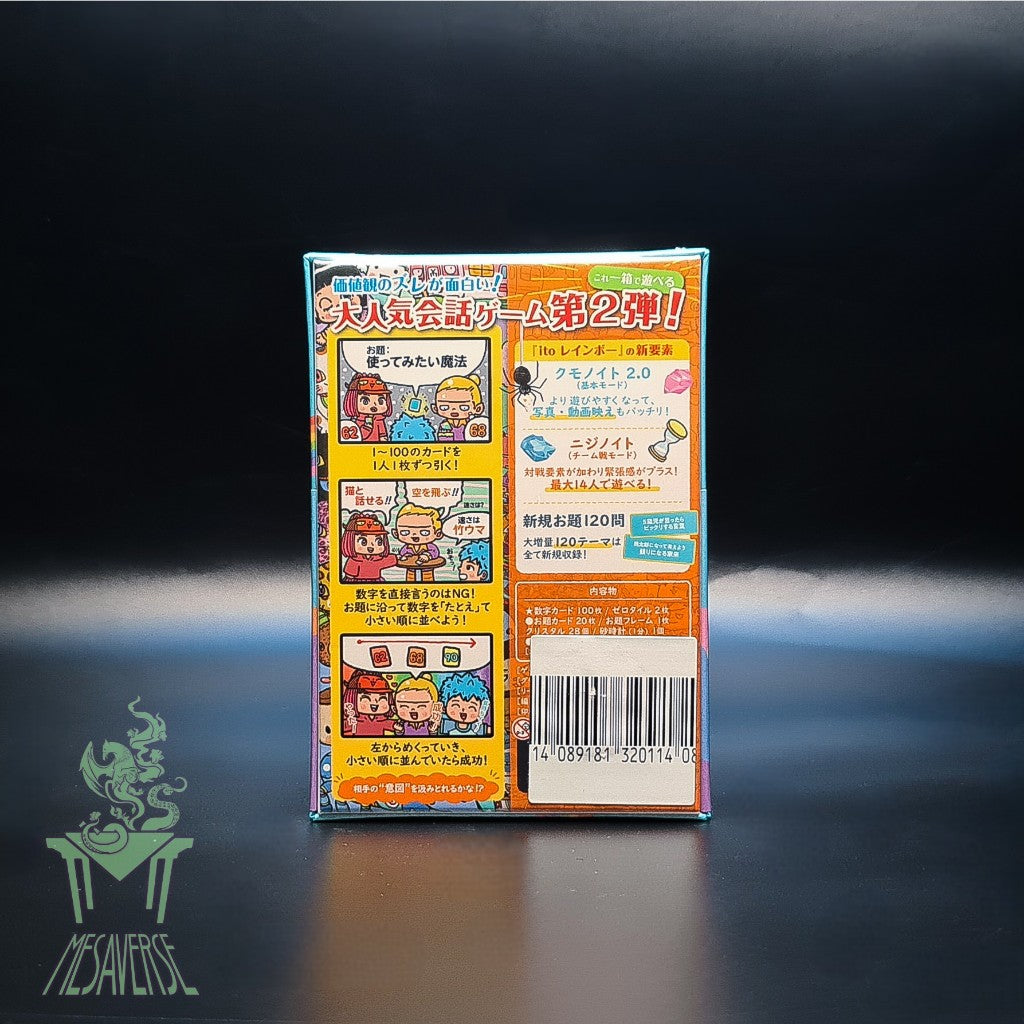 ito Rainbow comes with colorful gems and a timer to help assist with these new game modes. The deck still consists of cards numbered 1-100, but the card size is smaller than original ito. There are also different category cards.