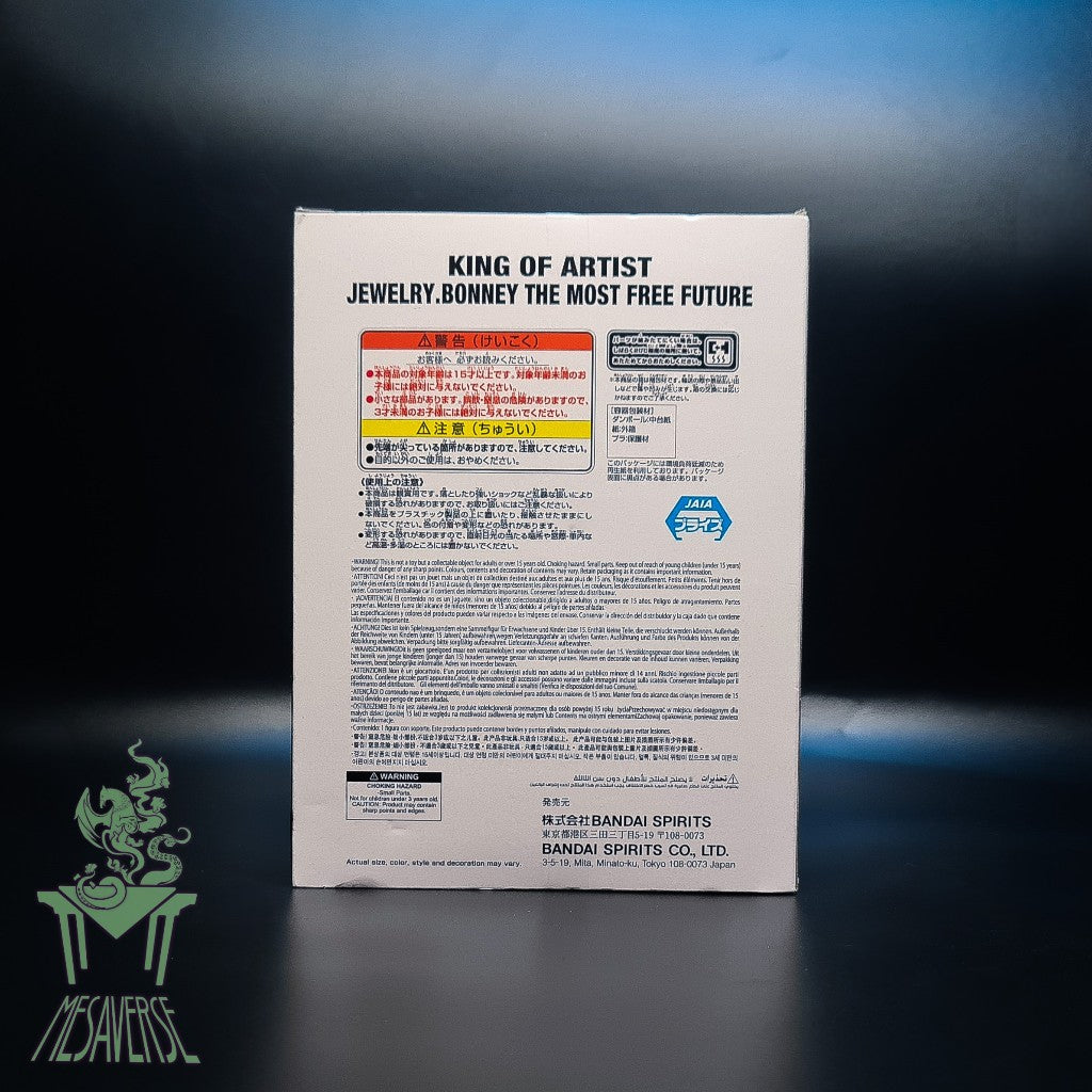 The One Piece Jewelry Bonney (The Most Free Future) King of Artist Statue by Banpresto is an 11-inch tall, highly detailed PVC figure depicting Bonney's Gear 5-inspired "Nika" form. Part of the Banpresto King of Artist line, it captures her in a dynamic pose, showcasing the white-haired "most free" appearance she takes on after imagining the future of Nika.