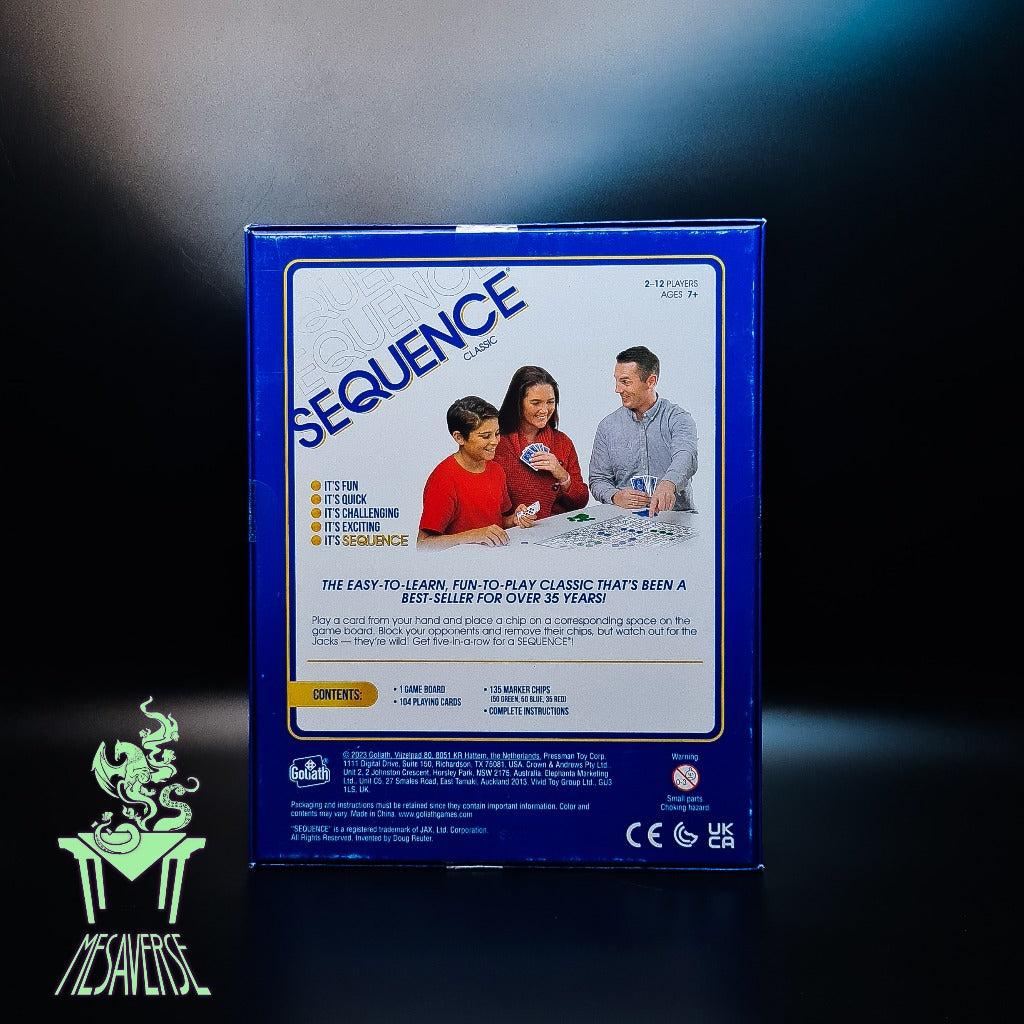 Sequence is a board and card game. The board shows all the cards (except for the Jacks) of two (2) standard 52-card decks, laid in a 10 x 10 pattern. The four corners are free spaces and count for all players equally.