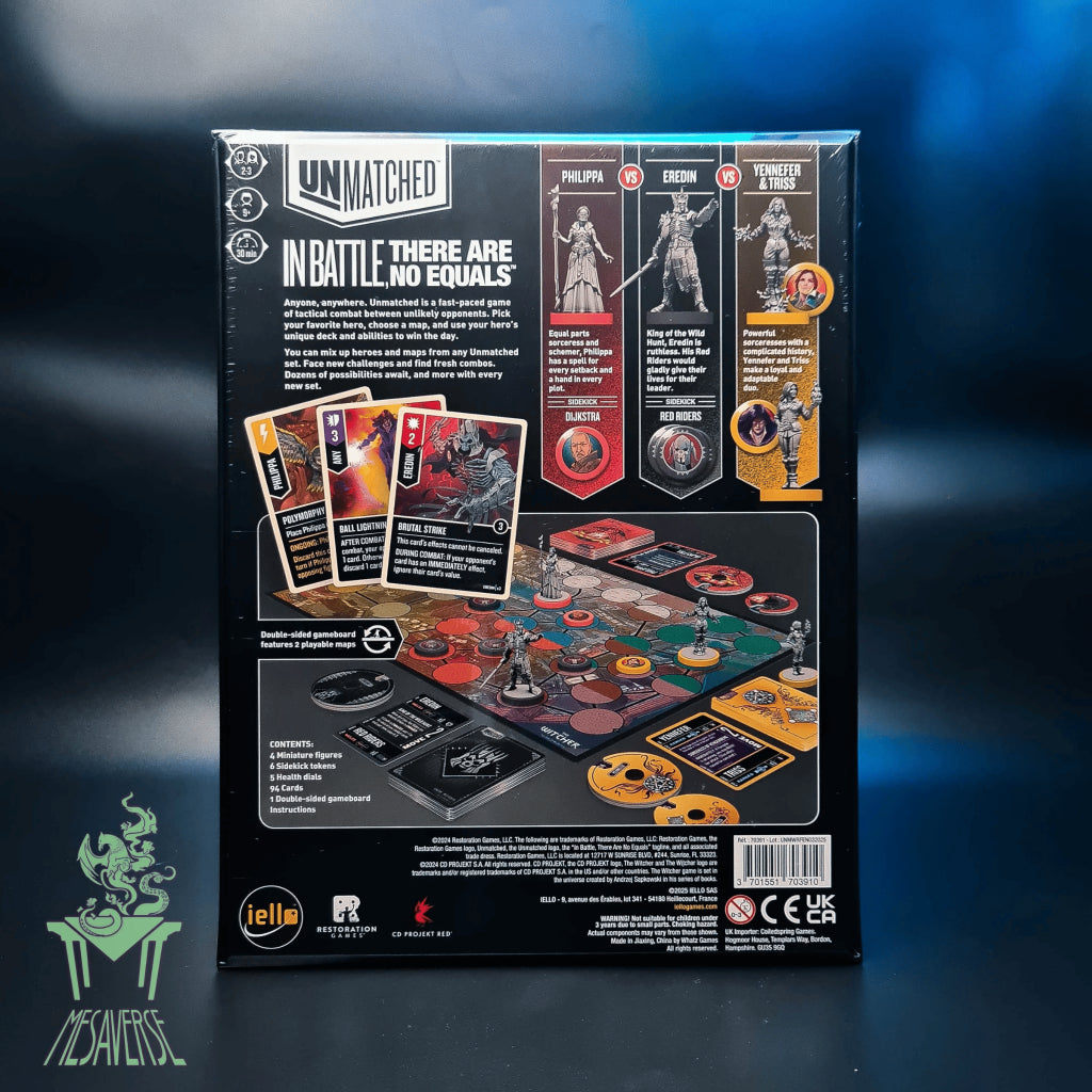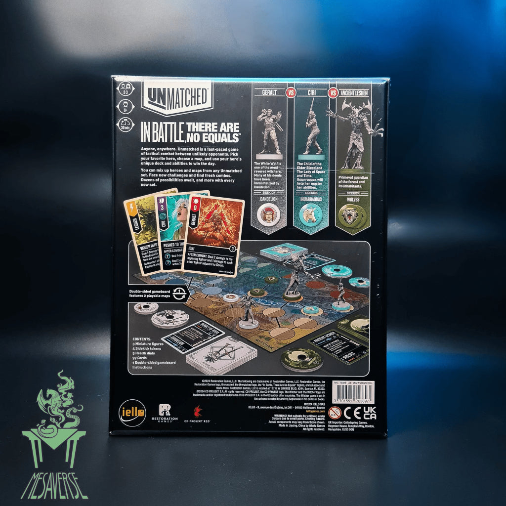 Unmatched: Steel and Silver has three playable characters: Geralt of Rivia, Ciri, and the Ancient Leshen. Each character comes with one or two companion tokens. Also has two battlefields from the Witcher series including the Witcher stronghold, Kaer Morhen."
