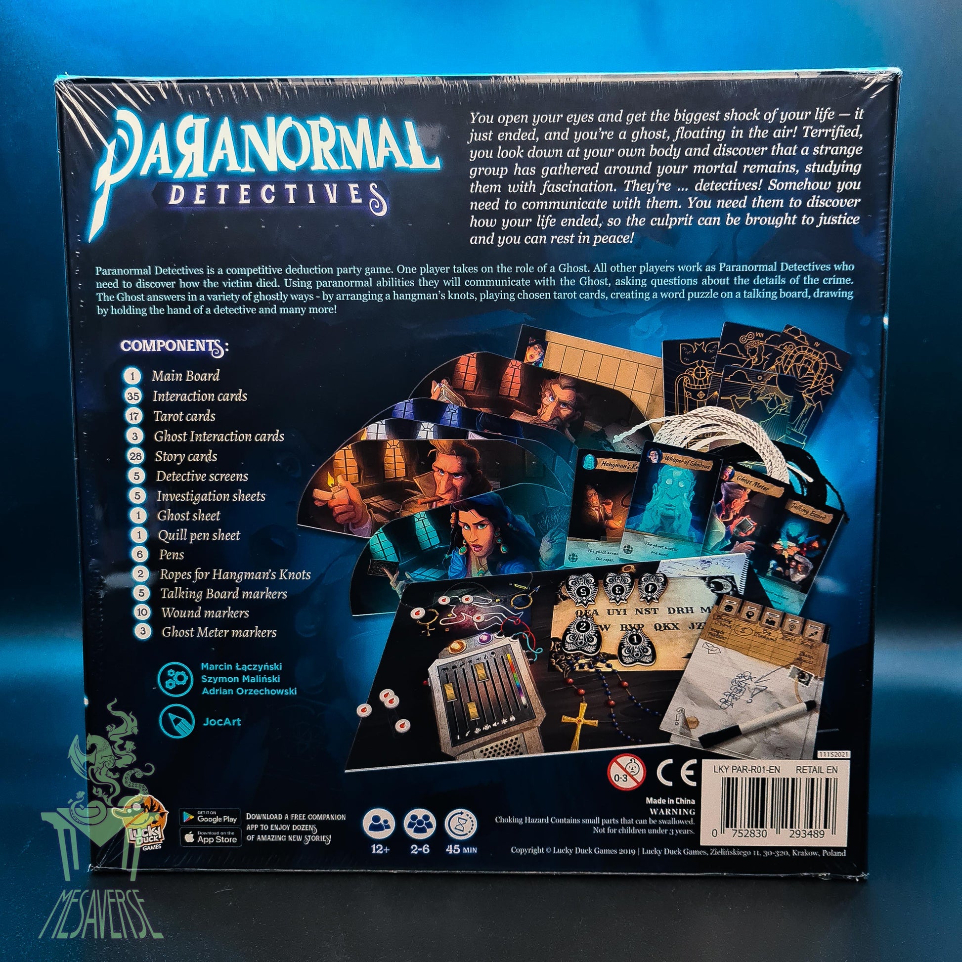 Paranormal Detectives is a deduction party game. One player takes the role of a Ghost. All other players work as Paranormal Detectives and need to discover how the victim died. Using paranormal abilities they will communicate with the Ghost, asking open questions about the details of the crime. The Ghost answers in a variety of ghostly ways - by arranging a hangman’s knot, playing chosen tarot cards, creating a word puzzle on a talking board, drawing by holding the hand of a detective and many more!