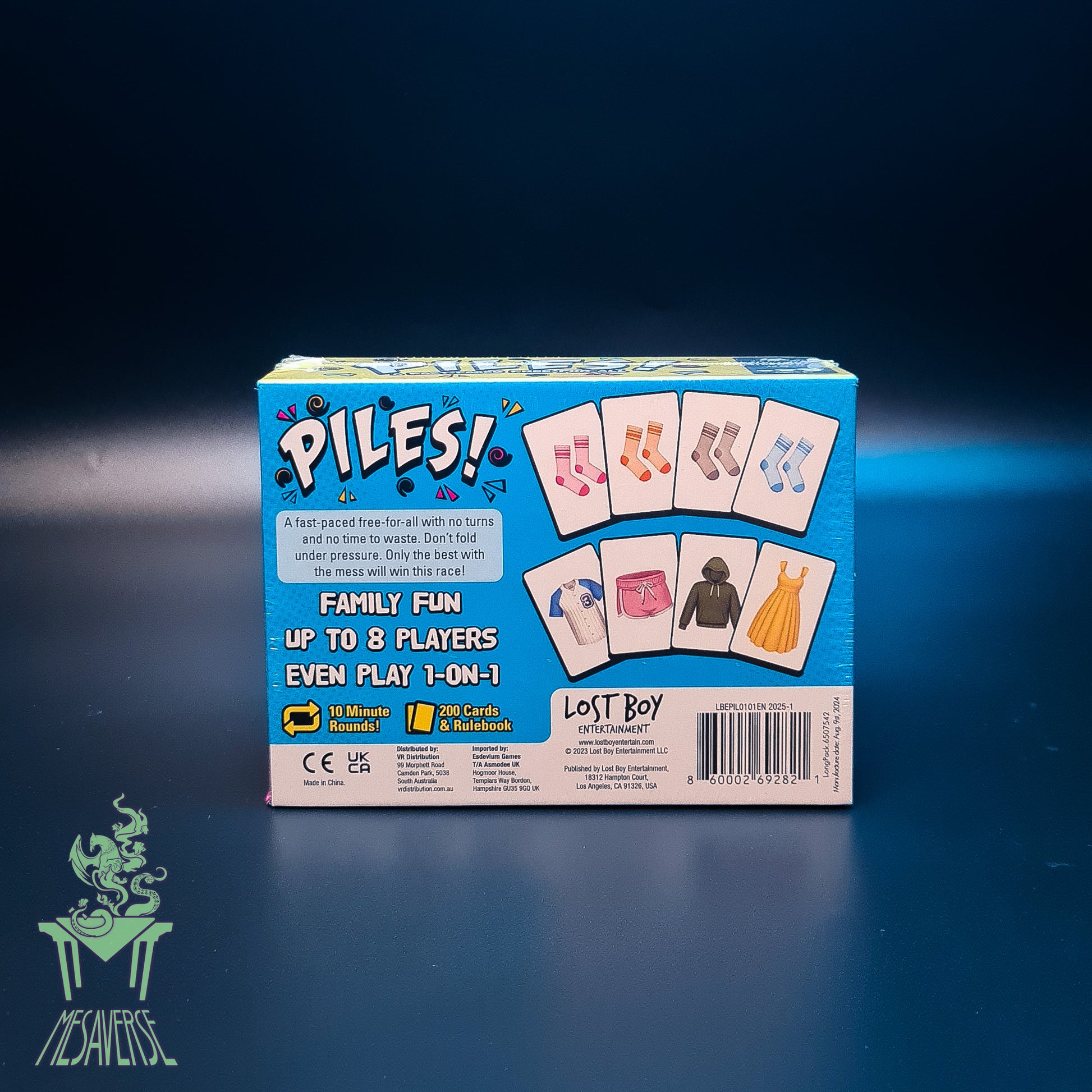In Piles you can play up to 8 players or even face off 1-on-1 for a fun two-player experience. You'll be matching sets of clothing by swapping cards through a universal discard pile. Average playtime is under 10 minutes making the game highly replayable and addicting. This portable card game is ideal for any occasion.