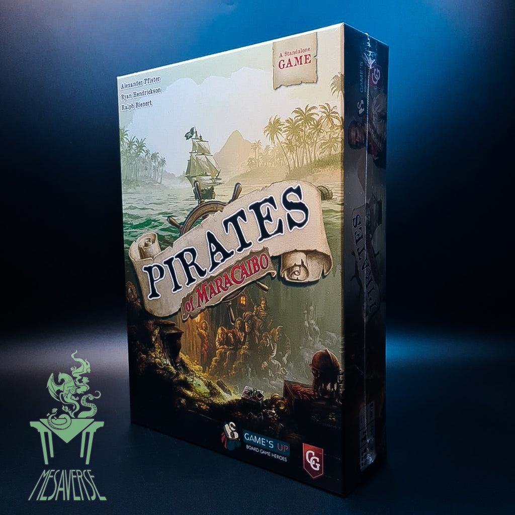 Pirates of Maracaibo is a standalone game in the same franchise as 2019's Maracaibo, and players who are familiar with that game will recognize some beloved concepts from the original. However, new players can jump right in with no prior knowledge of the original game as Pirates of Maracaibo is an independent game with a more accessible rule set. The game plays over three rounds in which you sail the Caribbean, hire crew, ally with other ships, explore the shore, amass the most treasure, and (ideally) retire to a secluded island as the most revered pirate in history. Cast off sailors and swashbucklers, cast off!