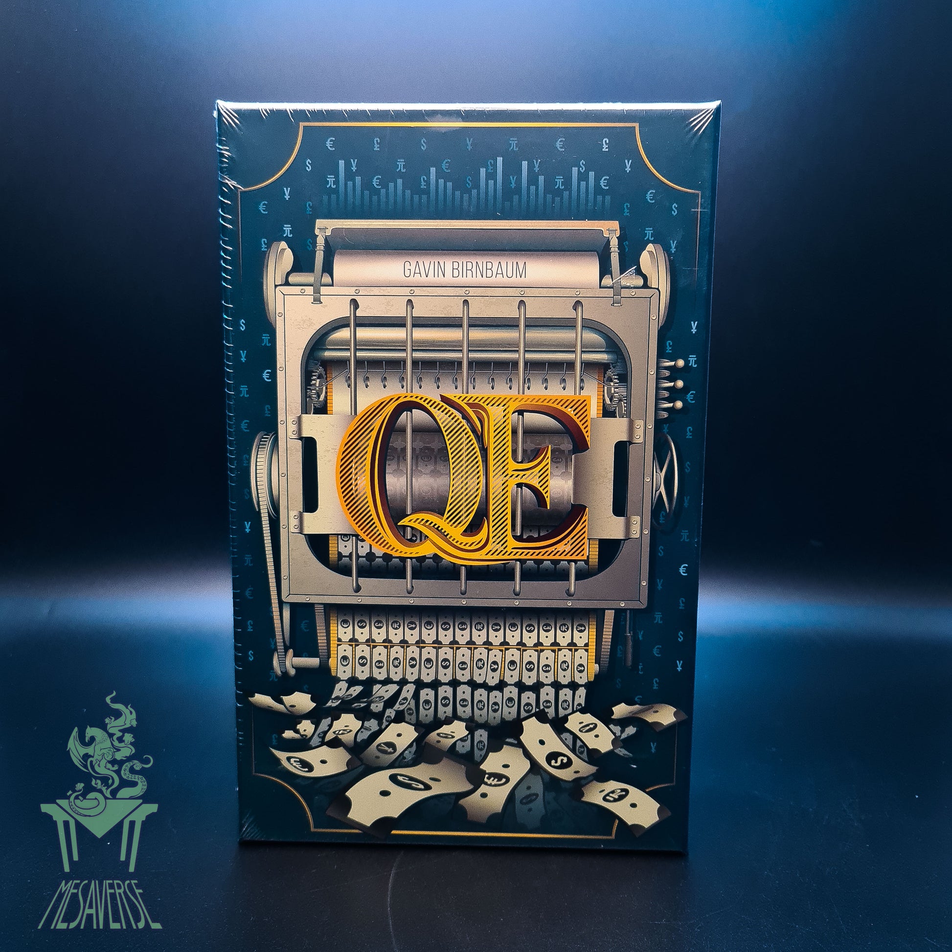 In Q.E., a term that stands for "quantitative easing", you play the role of a central bank. You bid on different size companies to accumulate various levels of victory points. The amount you bid is unlimited since you are the central bank and you own the printing press! After the initial "open" bid by the lead player, the other players bid in secret. After the sixteen companies have been "bailed out", bonus victory points are awarded for company sets of nationalization, monopolization, and diversification.