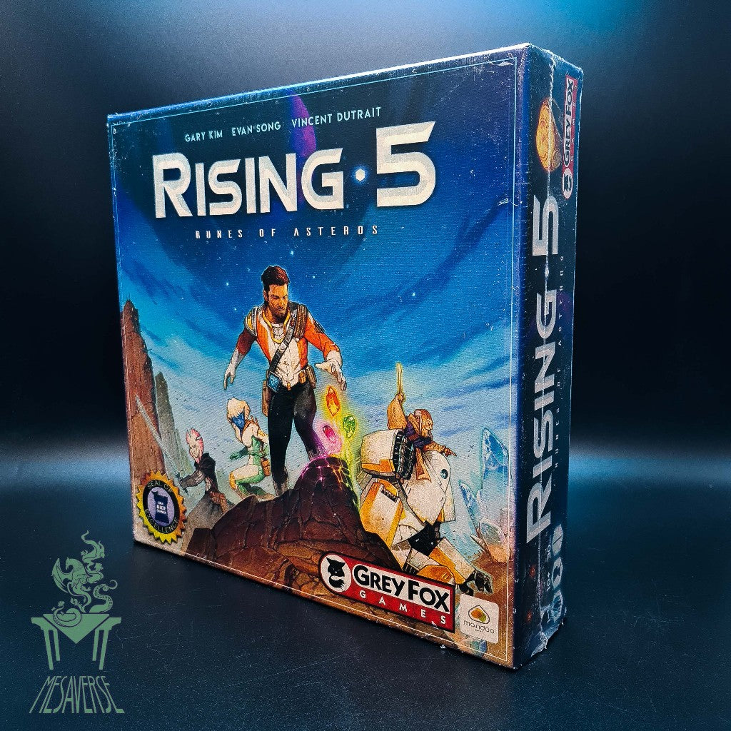 Rising 5: Runes of Asteros is a co-operative deduction and adventure game with a mobile phone application or a game master. Players must find the answer Code with the four Runes in the right arrangement before the evil power devours the planet. Players can explore the planet to collect energy or clues and to fight against evil monsters. When players try to unlock the code, the App or the game master will give signs that lead to right code.
