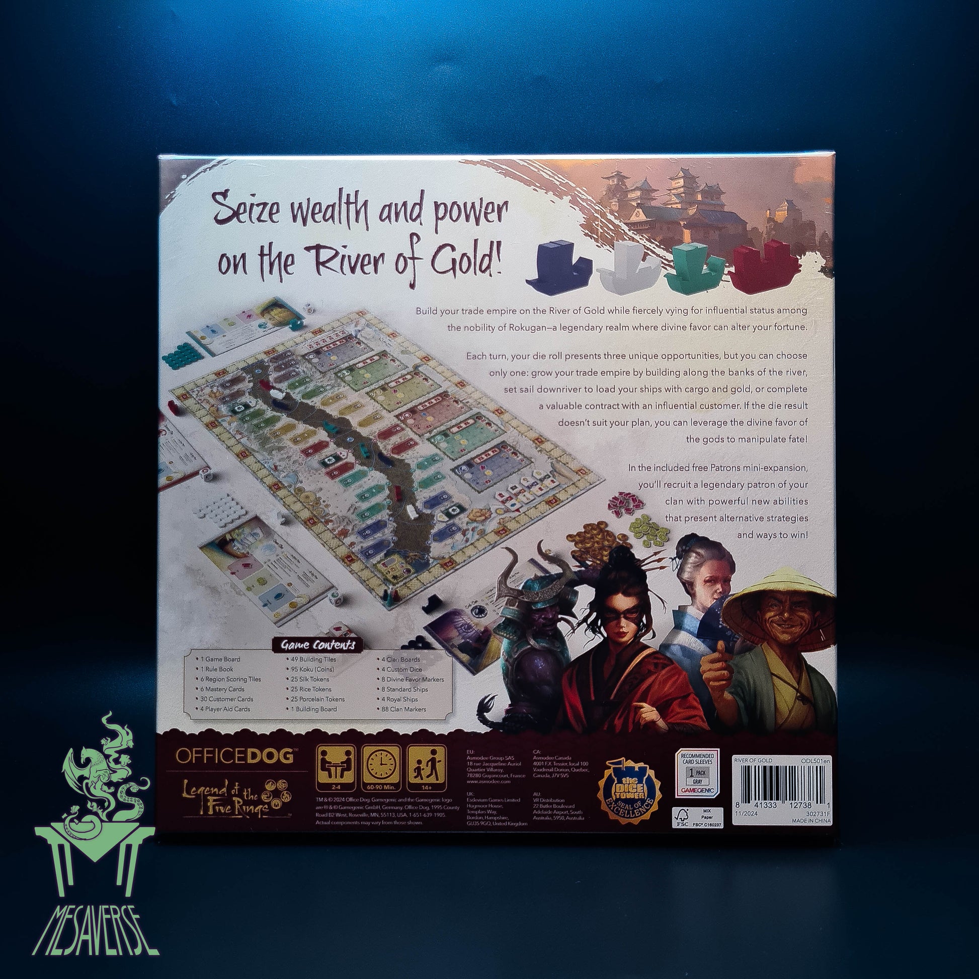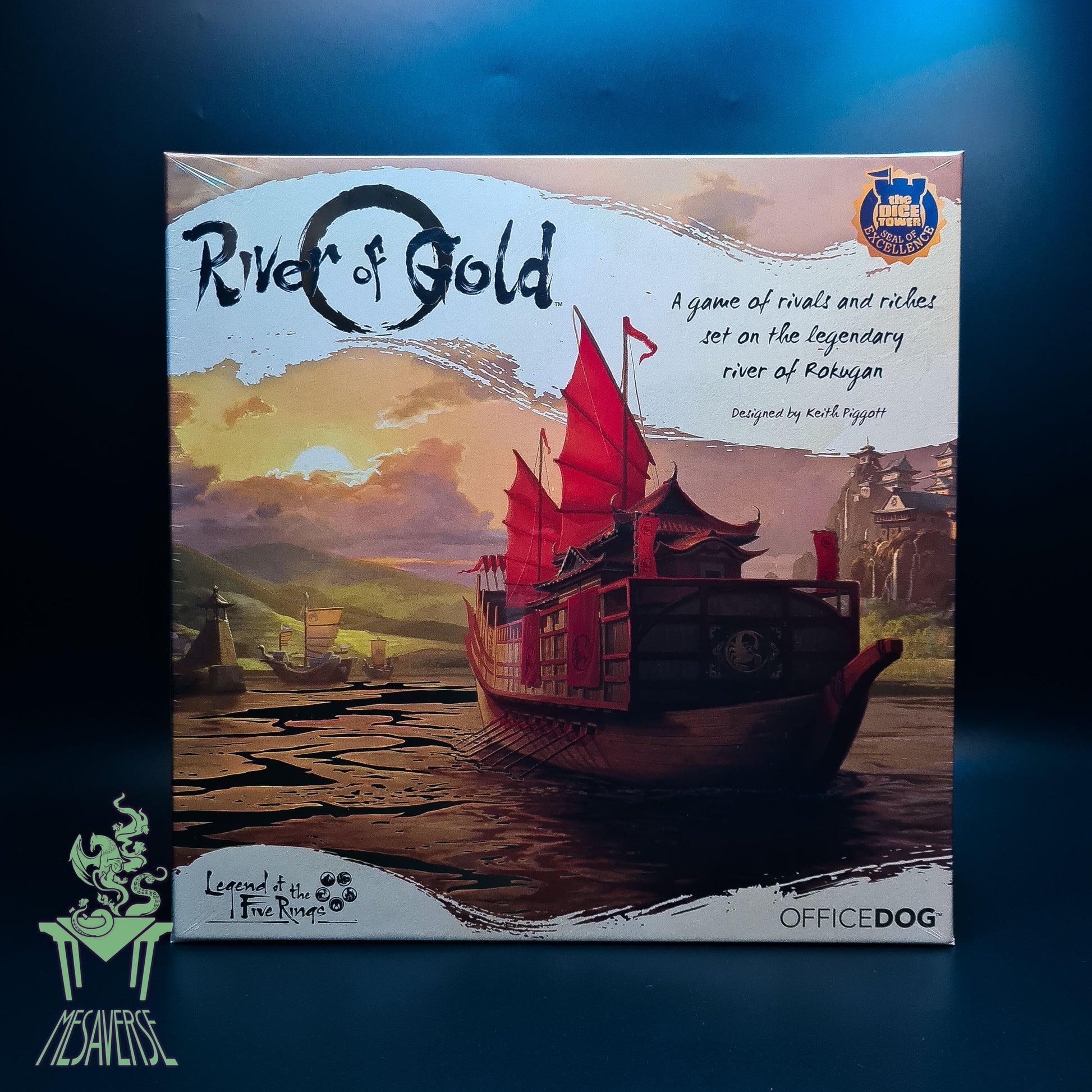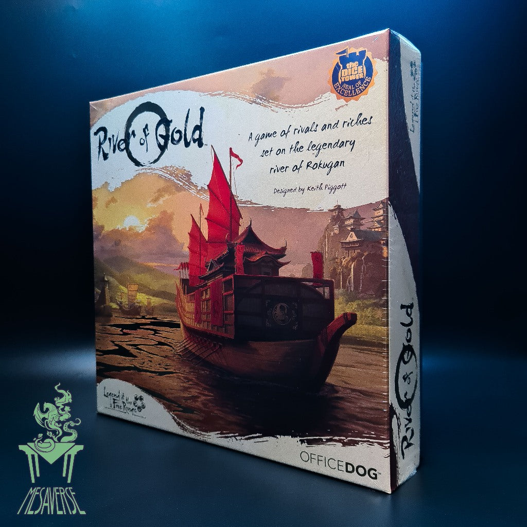 In River of Gold, players take on the role of river merchants allied with legendary samurai clans, each vying to exploit the river to earn wealth, glory, and wisdom. Will you invest in developing ports, markets, shrines, and more along the banks of the busy river? Or will you rely upon sailing the river of gold, growing your wealth and influence through delivery contracts, visiting the nobility, and garnering a bit of divine favor during tough times?