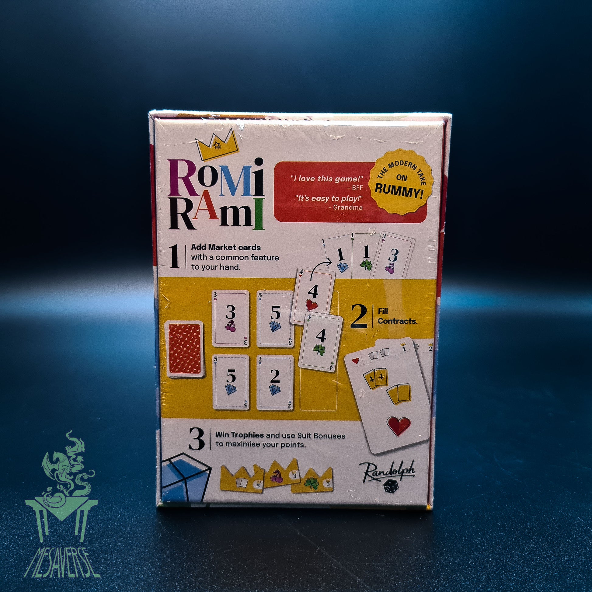 Number of Players: 1-4 Romi Rami is a game that feels like it’s been around forever, with thousands of people quietly and gradually polishing it over time. Falling squarely in the family of ‘Rummy’ games, Romi Rami features a double market. The first one has number cards, and the second one has contracts to complete.