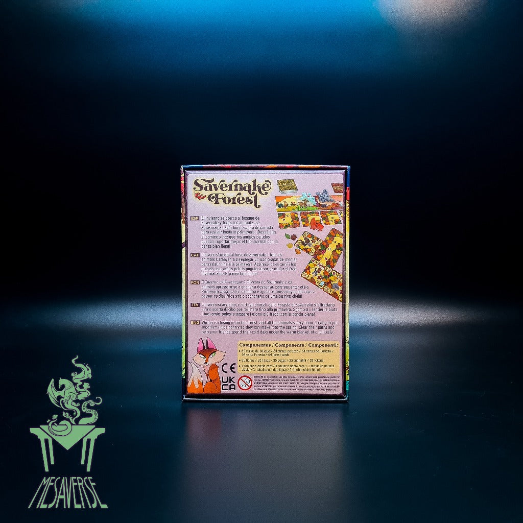 Foxes, hedgehogs, beavers, owls, rabbits, woodpeckers, wild cats... Up to 23 different types of animals live together in the Savernake Forest. At the end of autumn, they all prepare to spend the cold winter with enough provisions and here you are to give them a hand… Or a paw! To play Savernake Forest you have two decks of square cards, one showing the animals and the other with forest paths full of succulent food. Each player is randomly given an animal card, showing how many foods they can store and their preferences. For example, the fox loves eggs, but not berries or nuts. To get the best score, you must try to get each animal to collect its favorite foods.