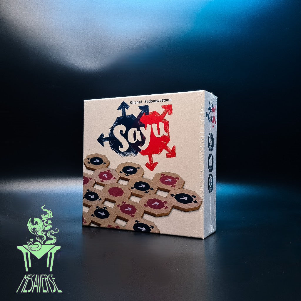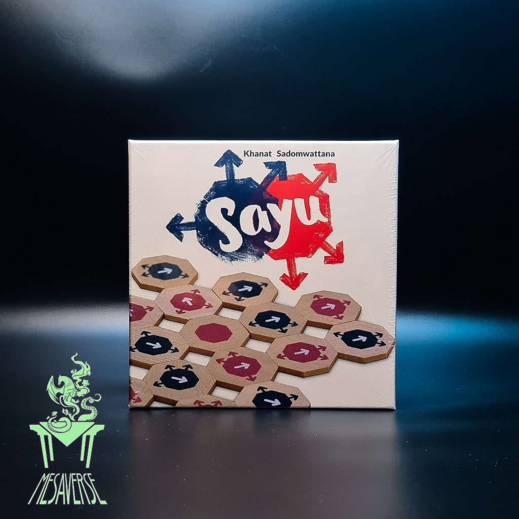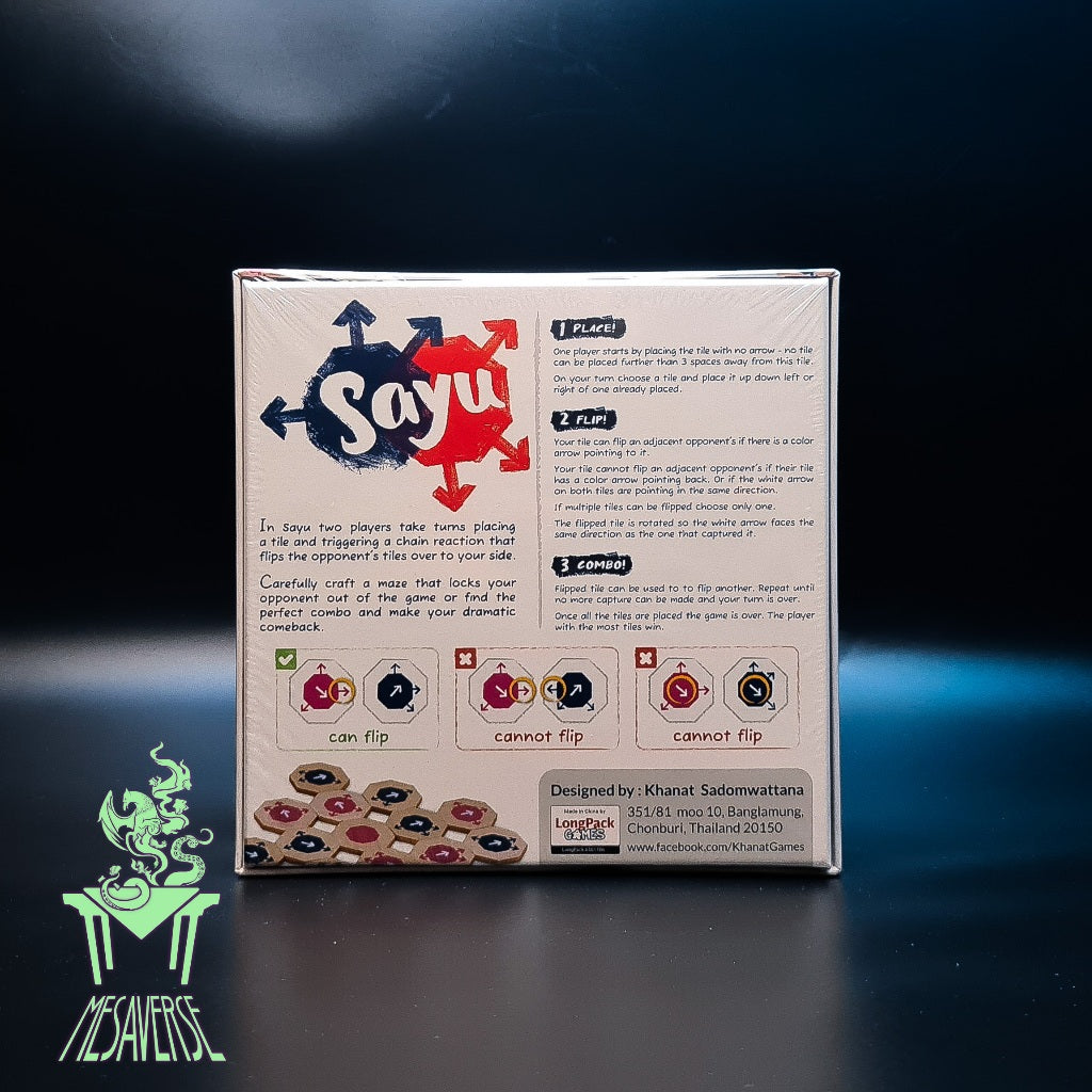 Sayū is an abstract strategy tile-laying, tile-flipping for two players. It is played with 49 unique two-sided octagonal wooden tiles and uses no board. The objective of the game is to have more tile of your color face up when all the tiles are placed.