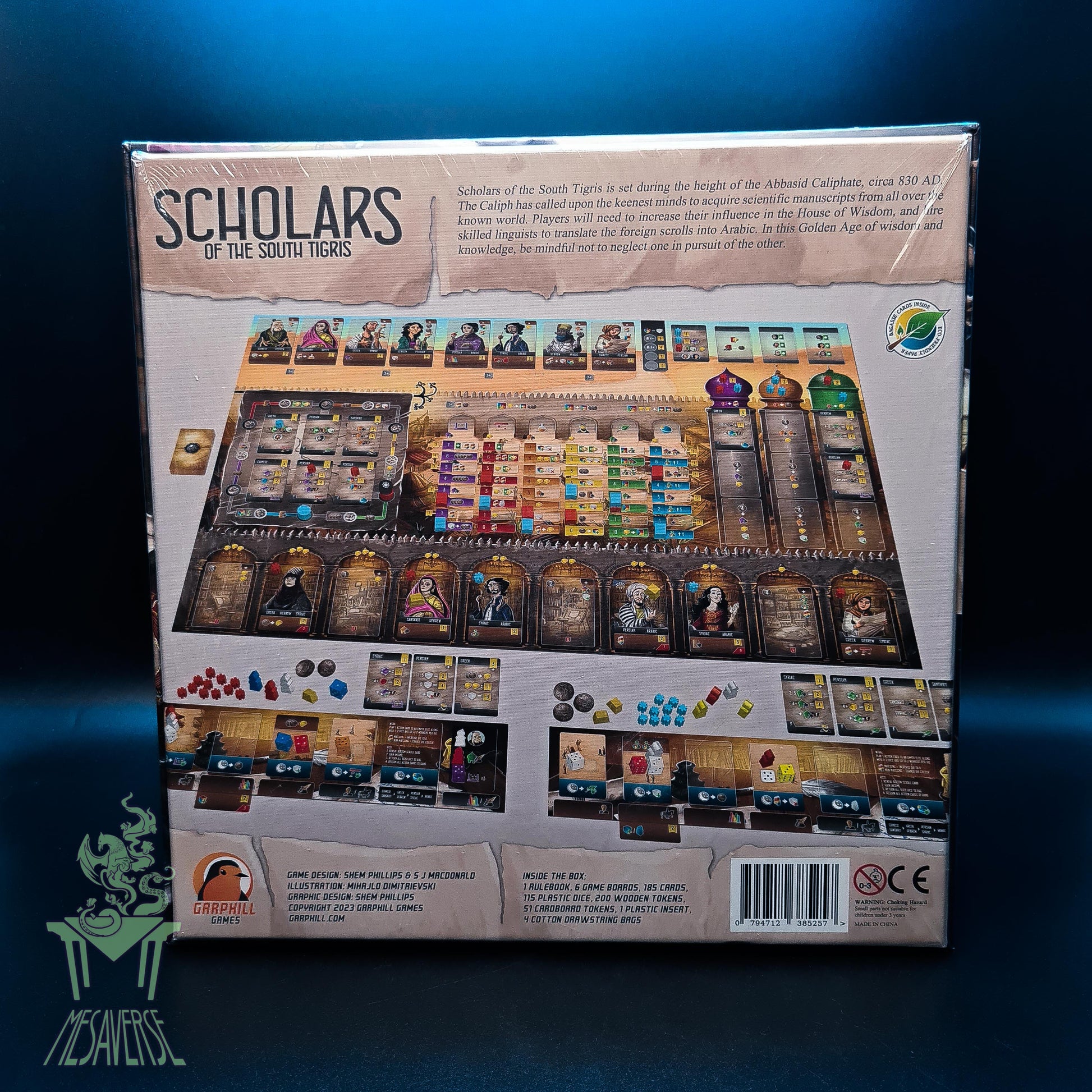 Scholars of the South Tigris is set during the height of the Abbasid Caliphate, circa 830 AD. The Caliph has called upon the keenest minds to acquire scientific manuscripts from all over the known world. Players will need to increase their influence in the House of Wisdom, and hire skilled linguists to translate the foreign scrolls into Arabic. In this Golden Age of wisdom and knowledge, be mindful not to neglect one in pursuit of the other.