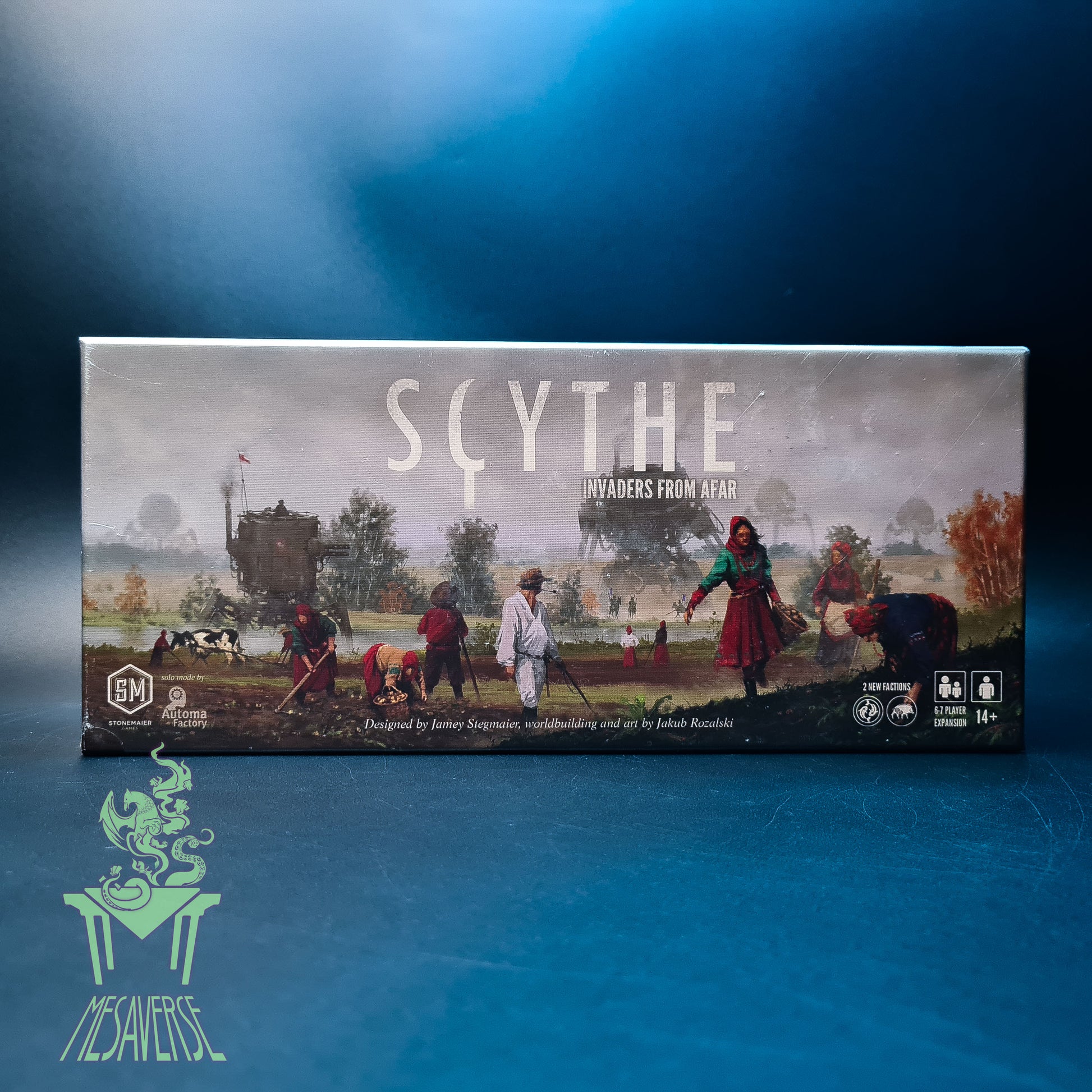 While empires rise and fall in Eastern Europa, the rest of the world takes notice. Two distant factions, Albion and Togawa, send emissaries to scout the land and employ their own distinct styles of conquering. Scythe: Invaders from Afar, an expansion for Scythe, adds two new factions: 10 miniatures, 62 custom wooden tokens, and 2 faction mats. It also includes some new cardboard tokens, two new player mats, six Automa cards, and a custom plastic insert designed to fit into the expansion box or the original Scythe box.