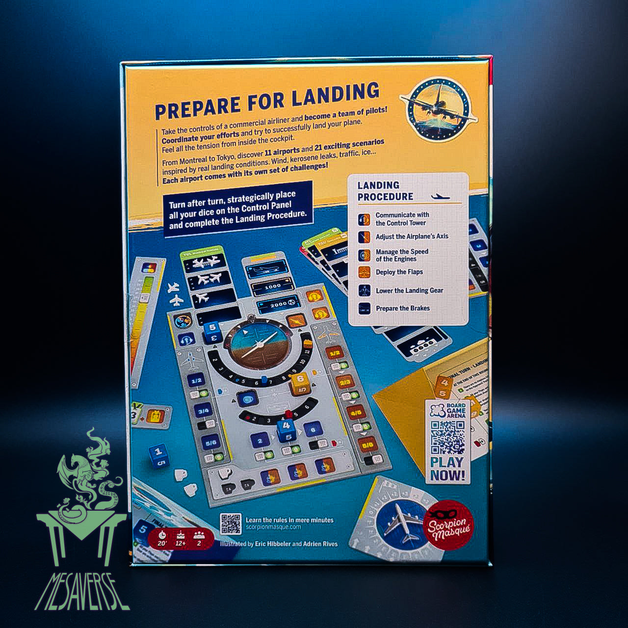 To land your plane, you need to silently assign your dice to the correct spaces in your cockpit to balance the axis of your plane, control its speed, deploy the flaps, extend the landing gear, contact the control tower to clear your path, and even have a little coffee to improve your concentration enough to change the value of your dice.