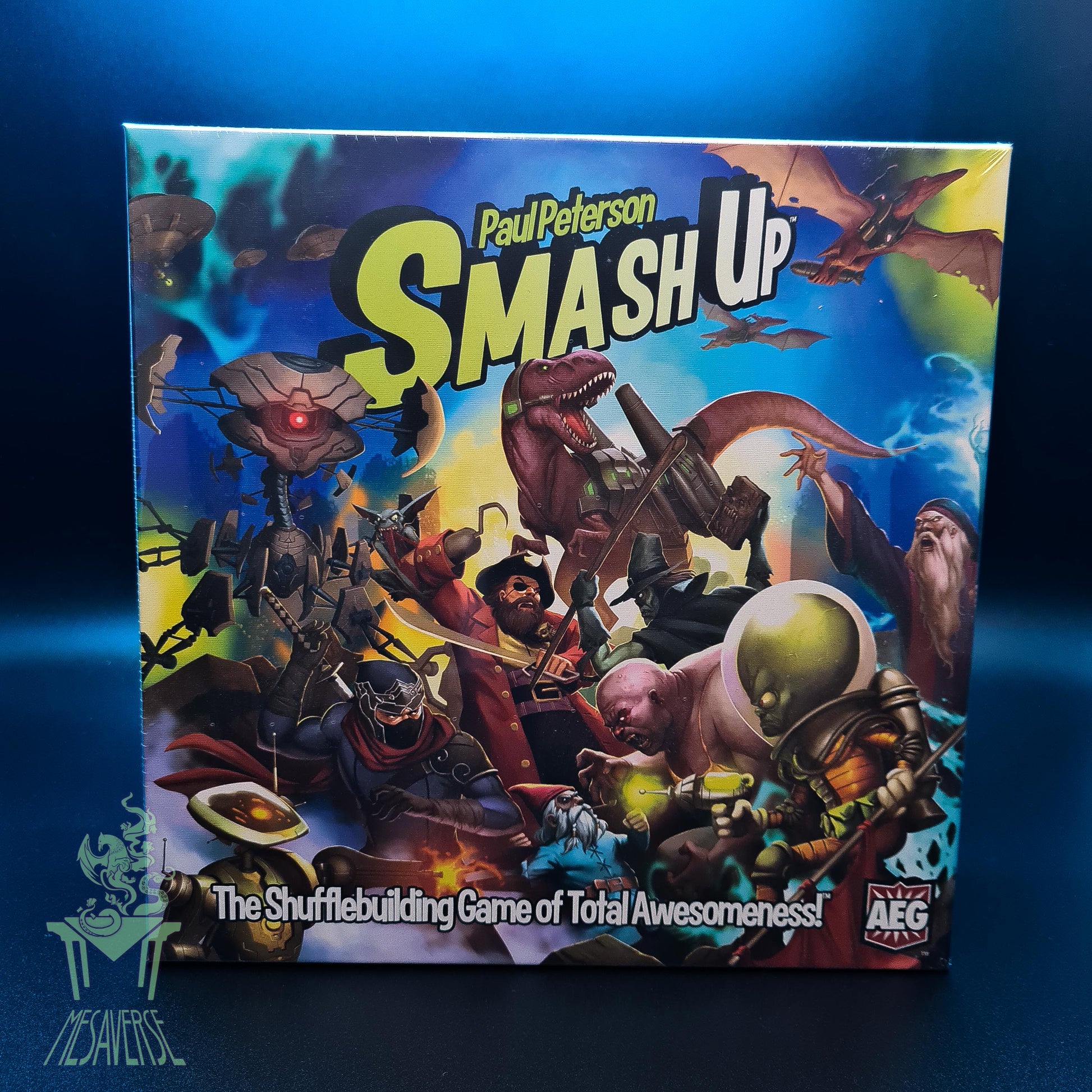 The "shufflebuilding" game Smash Up begins with a simple premise: take the 20-card decks of two factions, shuffle them into a deck of forty cards, then compete to crush more Bases than your opponents! Each faction involves a different gaming mechanism - the pirates move the cards, the zombies bring back the cards from the discard pile, the dinosaurs have enormous power - and each combination of factions brings a different gaming experience.