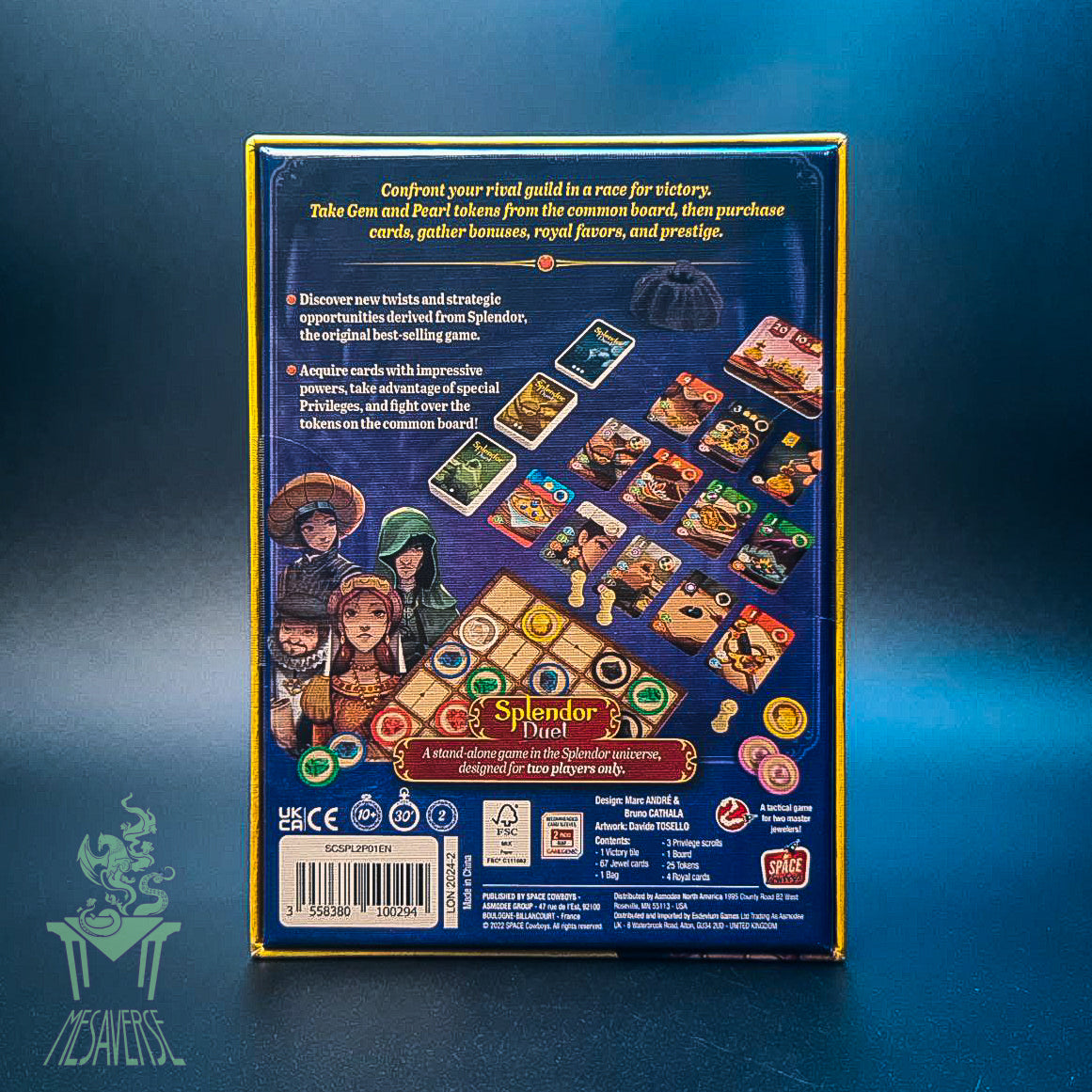 Discover new twists and strategic opportunities derived from Splendor, the original best-selling game. Acquire cards with impressive powers, take advantage of special Privileges, and fight over scarce access to Pearls.
