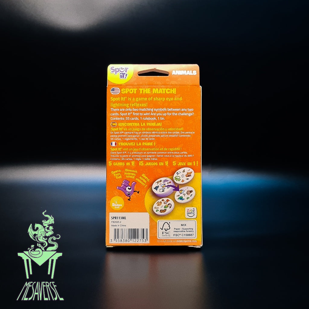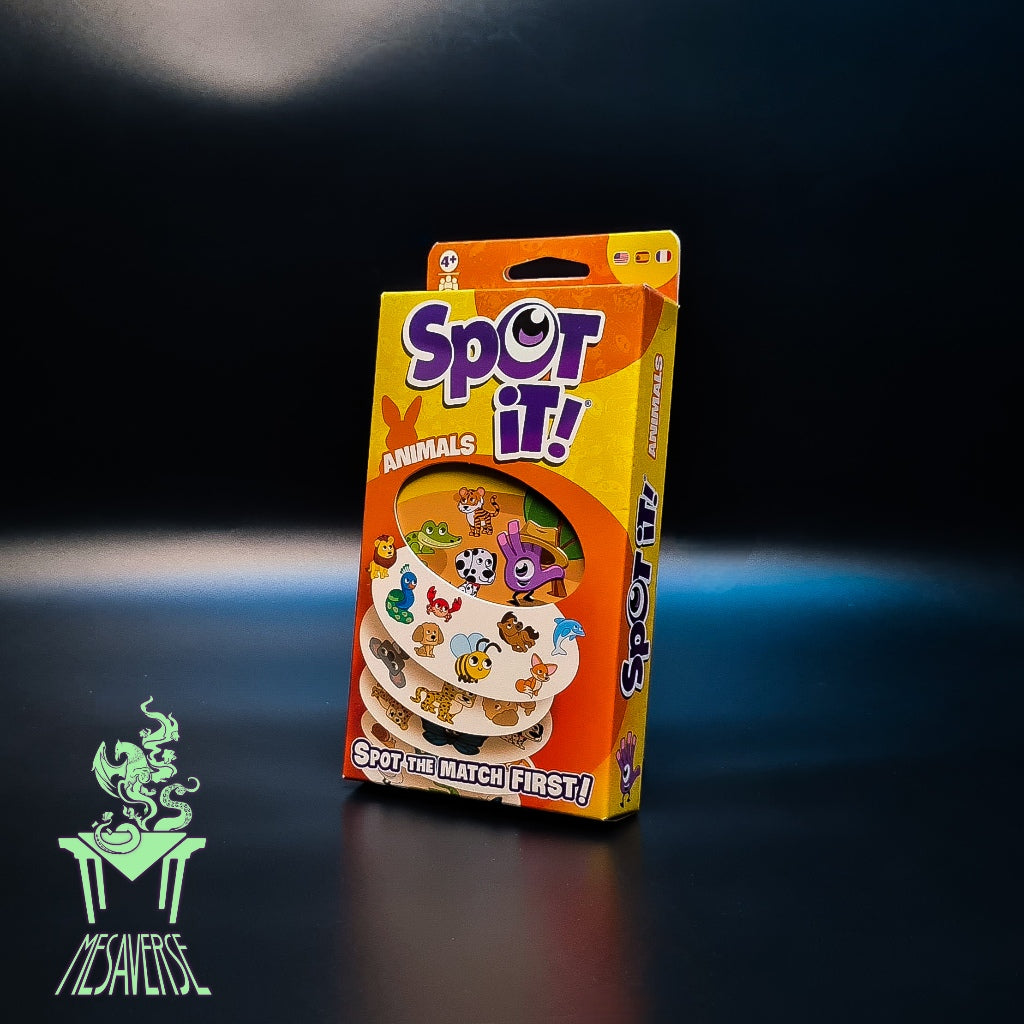 Spot it!, a.k.a. Dobble, is a simple pattern recognition game in which players try to find an image shown on two cards.
