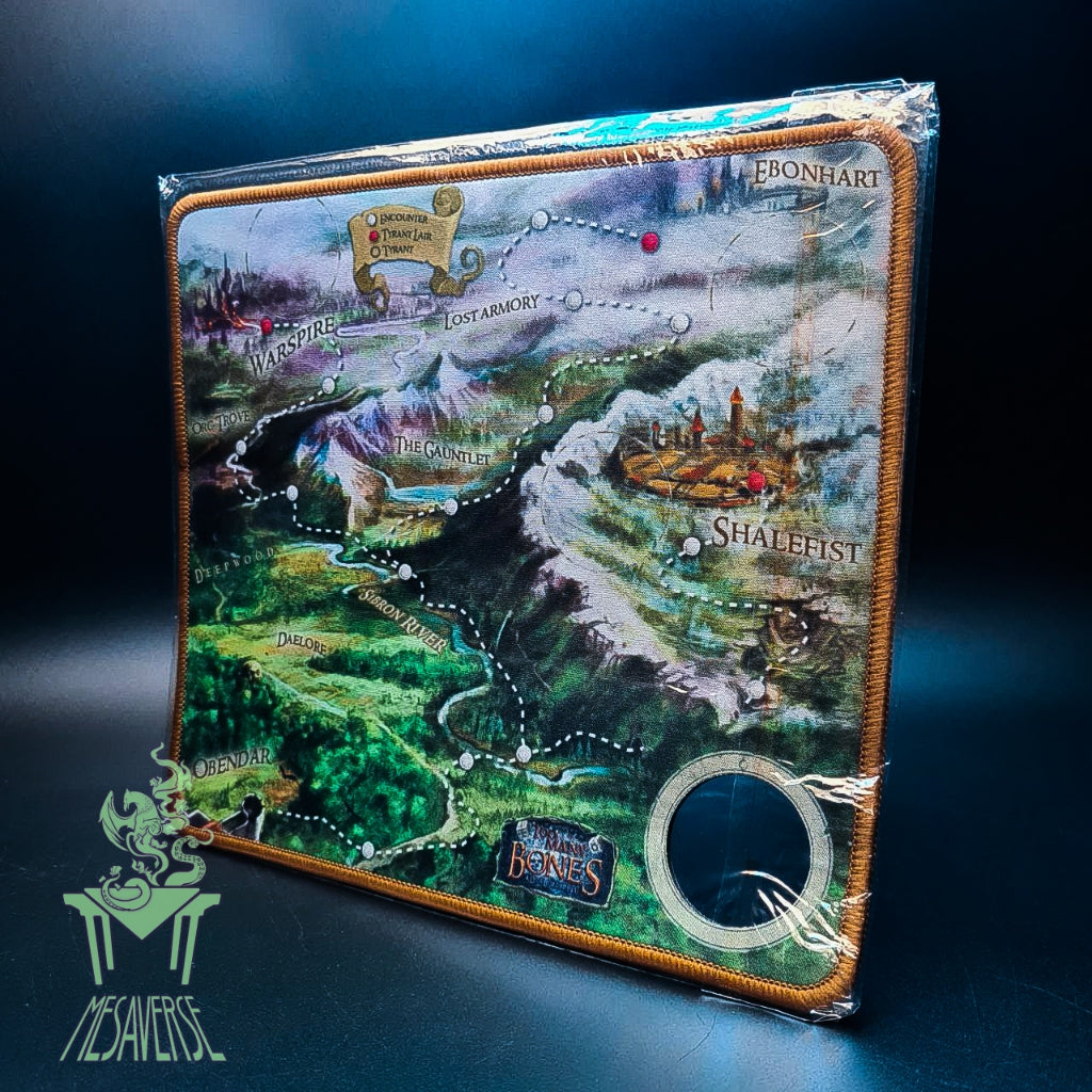 This beautiful neoprene mat features a labeled map of Daelore with artwork by Anthony LeTourneau and makes putting together a three-Tyrant campaign a breeze.