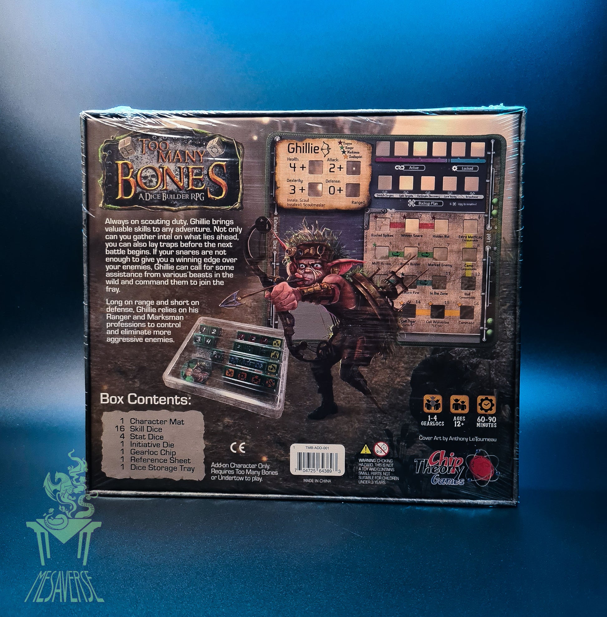 Enhance your Too Many Bones experience by adding Ghillie, the Scoutmaster! Ghillie adds numerous new tactical options to your party. Ensnare The Ebon in clever traps. Summon companions onto the Battle Mat to create havoc for the toughest Baddies. Use ranged attacks for invaluable versatility for both solo and group adventuring.