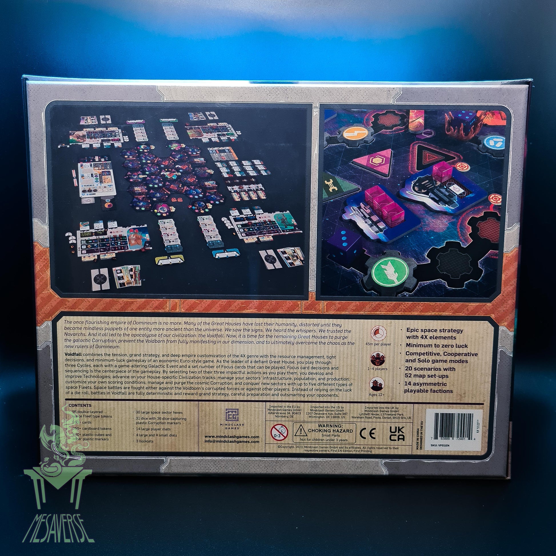 Voidfall is a space 4X game that brings the genre to Euro enthusiasts' tables. It combines the tension, player interaction, and deep empire customization of the 4X genre with the resource management, tight decisions, and minimum-luck gameplay of an economic Euro. Win by pushing back the Voidborn in the solo/coop mode, or by overcoming your rivals' influence in restoring the Domineum in the competitive mode — both using the same rule set and game system. Variability is ensured not only by multiple playable houses with their own strengths and weaknesses, but also by many different map set-ups for all game modes.