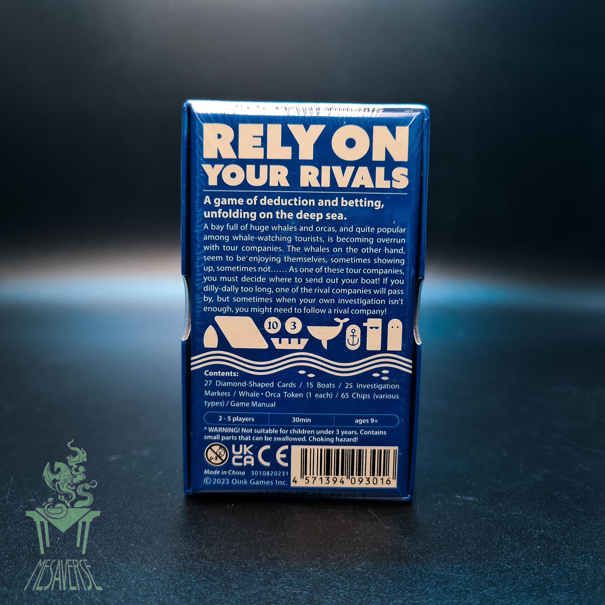 A bay full of huge whales and orcas, and quite popular among whale-watching tourists, is becoming overrun with four companies. The whales on the other hand, seem to be enjoying themselves, sometimes showing up, sometimes not...... As one of these tour companies, you must decide where to send out your boat! If you dilly-dally too long, one of the rival companies will pass by, but sometimes when your own investigation isn't enough, you might need to follow a rival company!