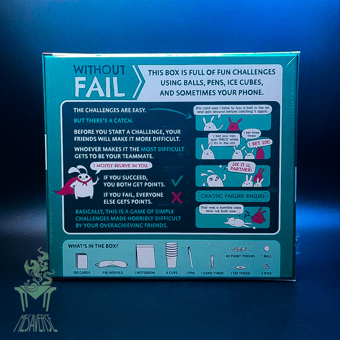 Number of Players: 2-99 Without Fail is a party game of seemingly easy challenges that are made horribly difficult by the other players.