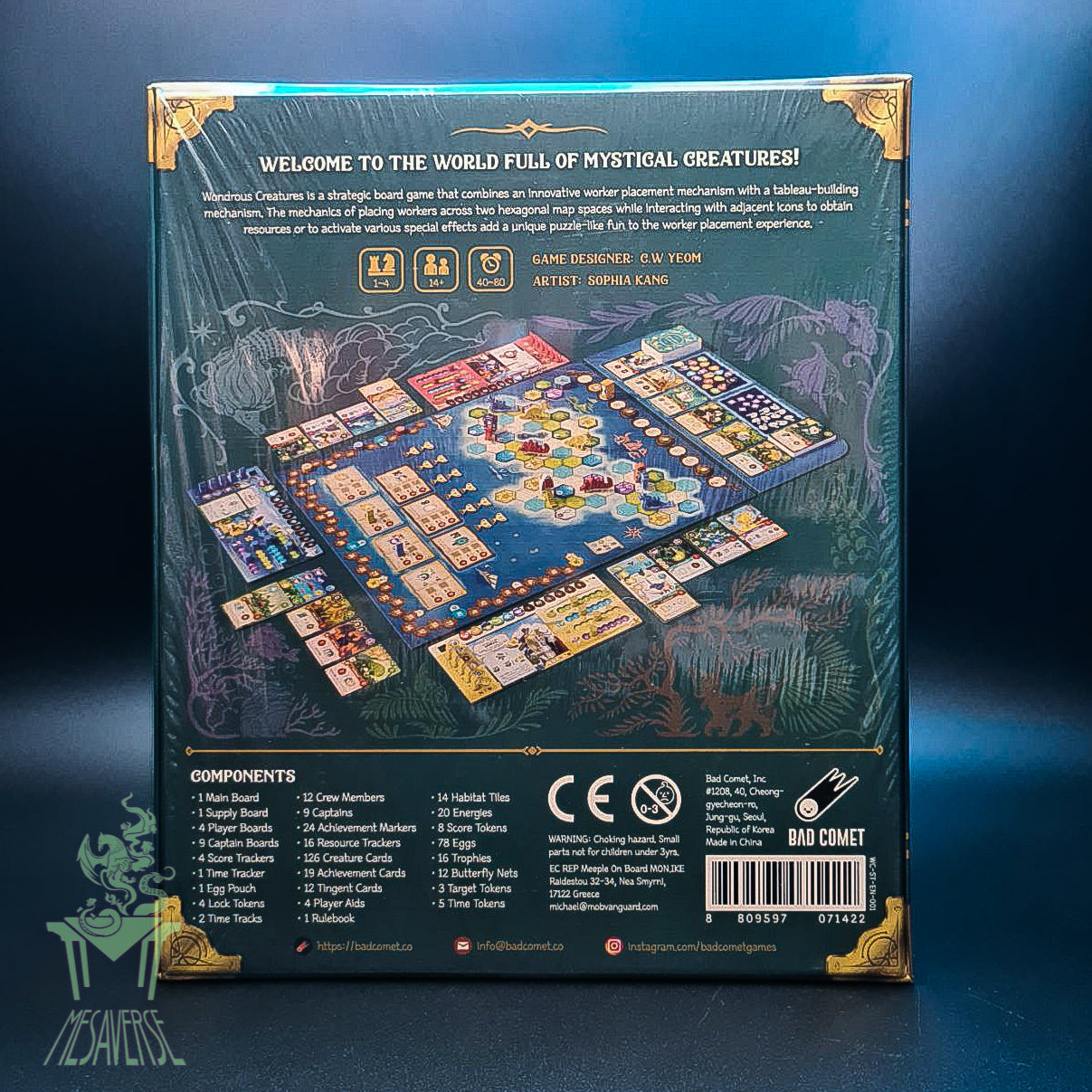 Unique Worker Placement: Wondrous Creatures’s worker placement mechanism provides an intriguing Hex Puzzle experience. Your deployed worker interacts with surrounding icons to bring in resources or cards, and works to activate special effects!