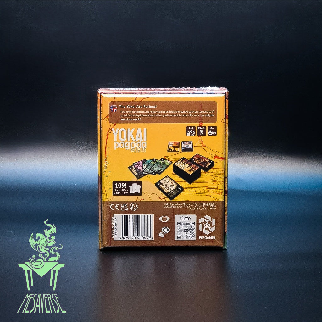 Try to match the balance between lose cards or keep the exact amount you need to reduce your score when other player ends the round. In Yokai Pagoda, knowing when to give a card, keep playing or end the round makes the difference!"